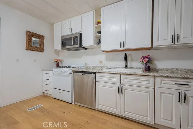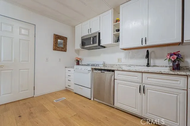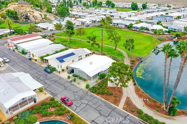 Beautiful home located in a highly desirable 55+ Manufactured Home Community. Situated on a great lot right next to the lake and golf course. This bright and open home features numerous windows that bring in plenty of natural light. The kitchen offers white cabinetry and stainless-steel appliances, with a convenient indoor laundry area nearby as well as 3 carport spaces for parking. Enjoy relaxing on the covered patio while taking in the scenic views. The community offers exceptional amenities including a clubhouse, swimming pool, and golf facilities—free for residents to enjoy. There are also many social events and activities throughout the year, making this an ideal place for an active senior lifestyle.