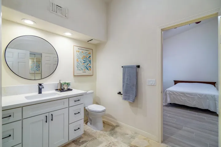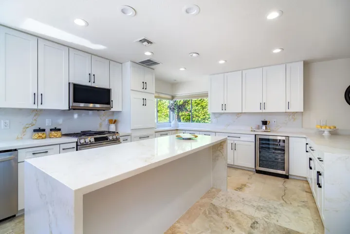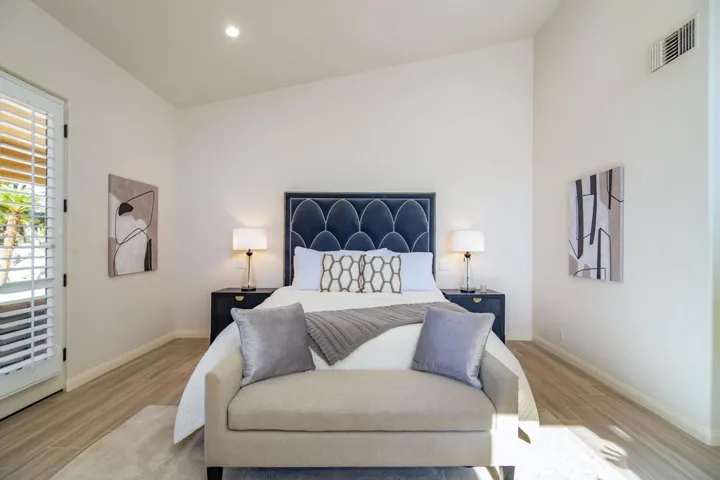 Experience unparalleled luxury in this exquisite estate offering 4 spacious bedrooms each with its en-suite bathroom; encompassing over 3,900 square feet of refined living space. Nestled within the prestigious Avondale Country Club in Palm Desert, this residence boasts prime 5th fairway views and a truly spectacular setting. Step into your private desert paradise featuring a stunning pool with shimmering waterfalls, a rejuvenating jacuzzi, opulent lounge areas, a covered wet bar, outside pool bathroom and lush, meticulously landscaped gardens–perfect for embracing breathtaking desert sunsets. The interior has been tastefully renovated, featuring sophisticated flooring, waterfall style islands in the kitchen along with brand new stainless steel appliances and cabinets. In addition, all interior bathrooms have been remodeled and beautifully updated exuding luxury at every turn. Included HOA amenities encompass 24-hour gated security, a prestigious social membership to the championship golf course, a state-of-the-art fitness center, tennis courts, and pickleball. Just 15 minutes from the world-renowned shopping on El Paseo, this luxurious estate offers an exceptional blend of prestige, comfort, and leisure.