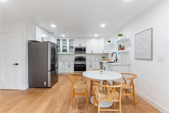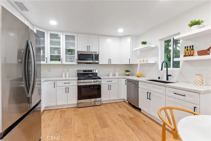 The ADU mirrors the quality and craftsmanship of the main home, featuring a modern kitchen with Samsung appliances, white shaker cabinets, Calacatta Caramel quartz countertops, and elegant finishes. Additional highlights include recessed lighting, central AC and heating, and matching oak flooring, ensuring a seamless integration of style and comfort.