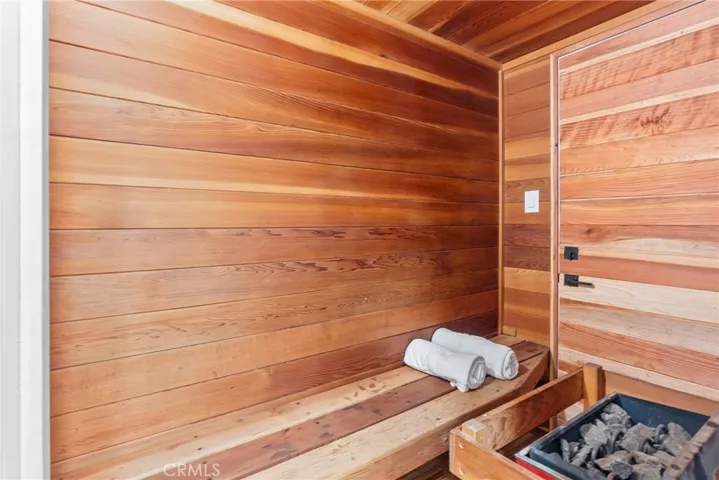 The primary suite is a sanctuary of comfort, complete with a custom walk-in closet, a built-in sauna, and a spa-inspired bathroom showcasing Venetian plaster shower walls, limewashed finishes, and brushed bronze hardware. Throughout the home, thoughtful upgrades include smooth stucco walls, recessed lighting, Pottery Barn and Arhaus light fixtures, and Arcadia European oak flooring. Expansive new Mangaris decks with steel cable railings extend the living space outdoors, offering the perfect vantage point to enjoy the serene surroundings.