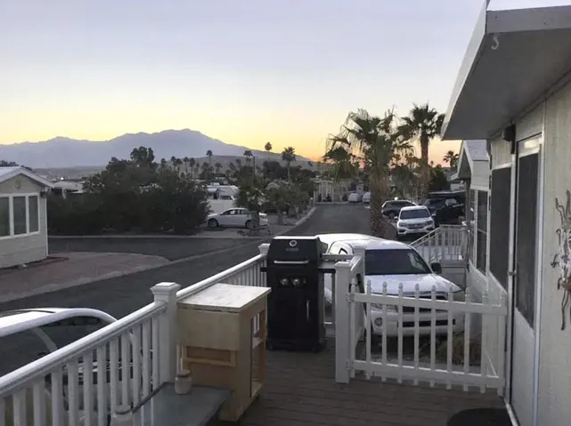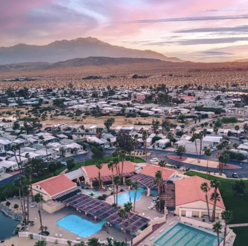 ALL AGED PARK!13 hot spring mineral pools, pickleball, tennis, various activities and events, cafe, chef who delivers dinners and so much more!RARE 2 bedroom park model with extra large California room, divided between living room and 2nd bedroom. Vaulted ceilings, large deck overlooking San Jacinto mountain and sunsets. Shed and fenced yard. LOWEST space rent tier! $644 per month.760-218-9974 for more info