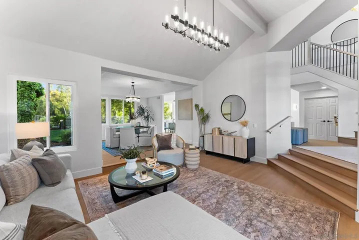 This stunning home sits on a private lot with serene golf course views and has been beautifully remodeled with designer finishes inside and out. From the moment you step through the grand entry, soaring ceilings and natural light create a warm, inviting atmosphere that flows effortlessly throughout the home. The heart of the property is its chef’s kitchen — a showstopper with professional-grade appliances, custom cabinetry, a generous island, and an open design that connects seamlessly to the family room and breakfast area. Whether you’re hosting a gathering or enjoying a quiet evening by the fireplace, every space is designed for comfort and connection. Downstairs, you’ll also find a formal living and dining room, a guest bedroom with a full bath, and a convenient laundry room. Upstairs, the primary suite takes center stage with vaulted ceilings, a sitting area, cozy fireplace, spa-like bathroom, and unobstructed views of the fairways. Two additional bedrooms and another full bath complete the second level. The backyard is equally impressive — a lushly landscaped retreat with a great outdoor patio and a backdrop of open golf course greenery that makes entertaining or relaxing effortless. From weekend barbecues to sunset gatherings with friends, the backyard provides the ideal setting for seamless indoor-outdoor living. Living here means more than just a beautiful home: you’ll have access to the Bernardo Heights Club with swimming, tennis, pickleball, fitness, and more. All of this within minutes of top-rated schools, shopping, dining, and easy freeway access.