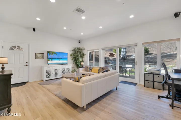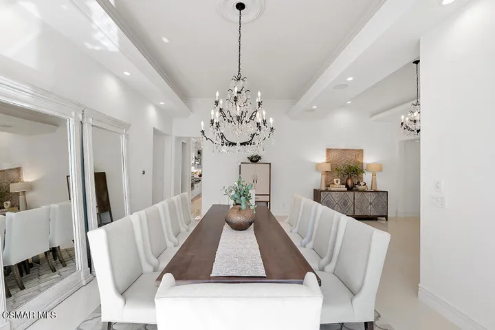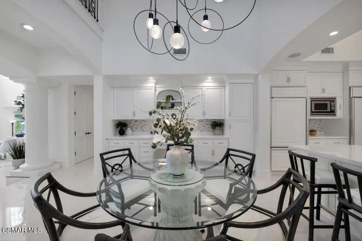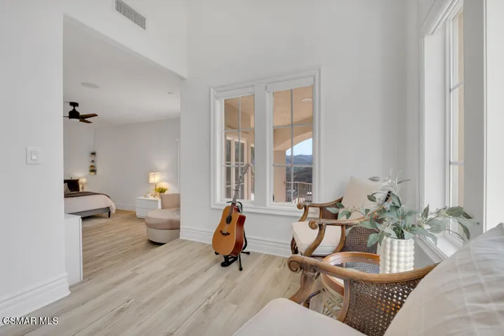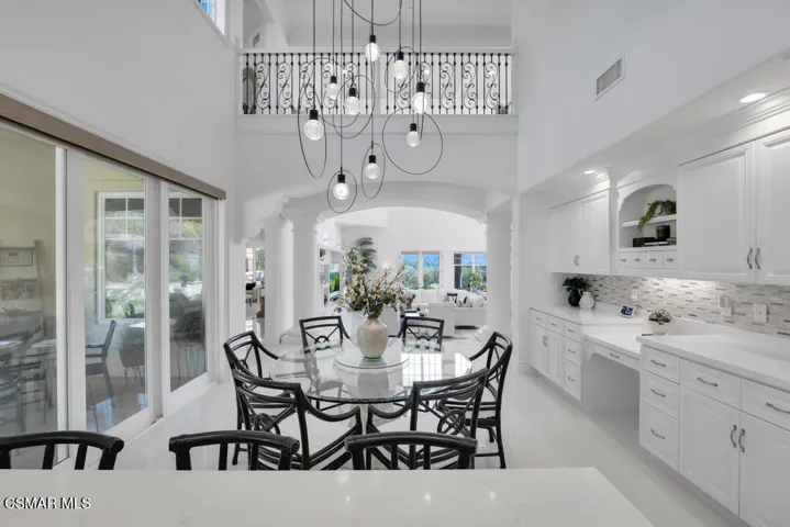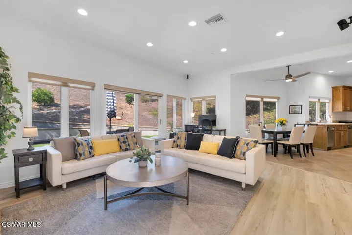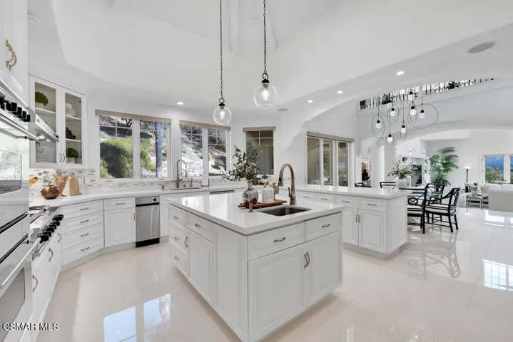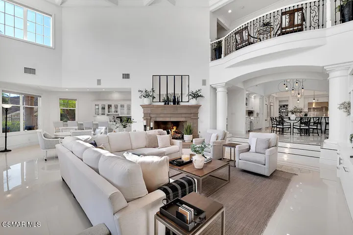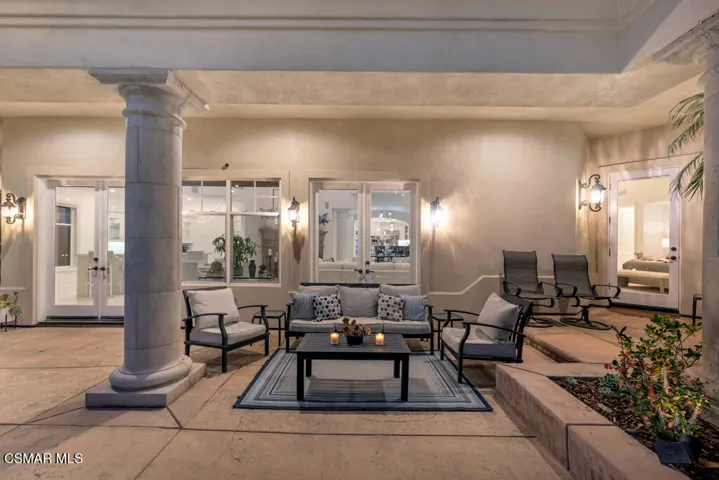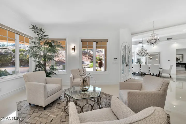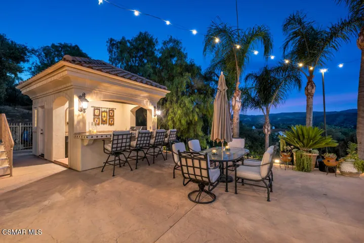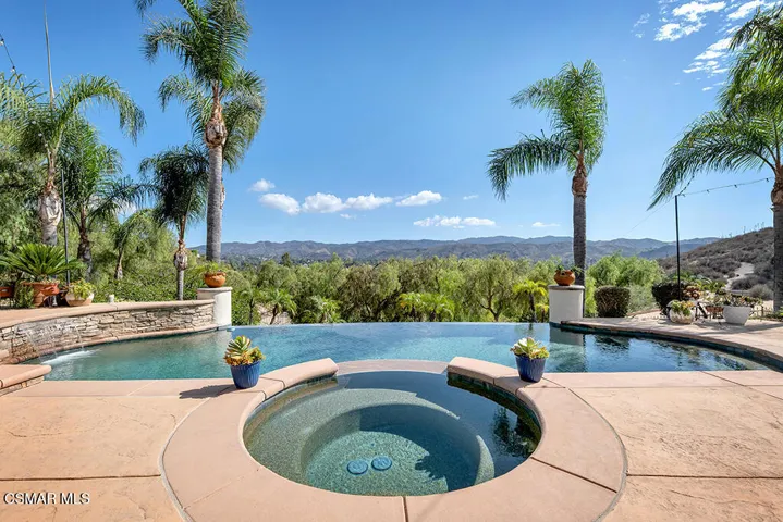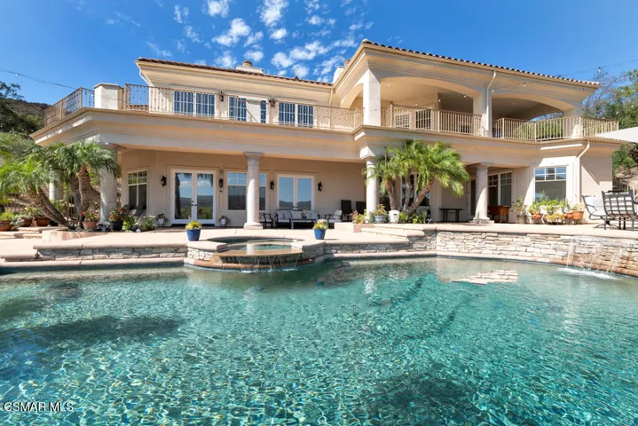 Introducing a Modern Mediterranean estate that redefines luxury living — a serene, gated oasis offering complete privacy, peace, and sophistication. Perfectly positioned in one of the area’s most desirable enclaves, this exceptional property is surrounded by rolling hills, scenic trails, and breathtaking natural beauty. It blends timeless Mediterranean architecture with the best of modern California design.A long private driveway leads through manicured grounds to a residence designed for seamless indoor-outdoor living. Expansive spaces open to covered patios and balconies, creating a natural flow between elegant interiors and the resort-style exterior.At the heart of the outdoor experience is a spectacular infinity pool overlooking panoramic mountain and treetop views. The pool area is complimented by a fully equipped outdoor bar/kitchen with bar seating, refrigerator, bathroom, and generous lounge space — ideal for entertaining or relaxing under the sunset sky.Spanning nearly 6,300 square feet, this five-bedroom, seven-bath estate also features 1,100 square feet of balcony space and a 900-square-foot finished garage. Italian porcelain flooring anchors the main level, enhanced by soaring ceilings, architectural detailing, and fine designer finishes throughout.The chef’s kitchen is a dream come true — featuring a six-burner range with grill, warming drawer, dual sinks, sleek cabinetry, and a large island for gathering. Smart home technology, surround sound, Cat-5 wiring, and a full security camera system provide modern comfort and peace of mind.Completely remodeled in 2020, the home showcases a harmonious blend of sophistication, efficiency, and style. All-new insulation, energy-efficient windows and appliances, and a new HVAC system ensure year-round comfort. The roof was serviced in 2025, and the freshly painted exterior mirrors the home’s pristine interior. Designer lighting inspired by Art Nouveau adds subtle elegance, while custom closets offer organization with flair.The downstairs primary suite is a peaceful retreat with a fireplace and direct access to the backyard for a true indoor-outdoor escape. Upstairs, a junior primary suite with loft and balcony provides flexible living for family or guests. Entertainment lovers will appreciate the soundproof home theater, offering a cinematic experience in total comfort.A beautifully appointed guest house adds to the property’s versatility, featuring a spacious living room, full kitchen, large bedroom, and bath — perfect for extended stays, in-laws, or private retreats.Additional highlights include a tankless water heater, custom iron staircase, lush landscaping, and extensive energy-efficient upgrades. Whether hosting a grand event or enjoying a quiet evening surrounded by nature, this estate embodies effortless luxury and modern California living.Located near the prestigious Wood Ranch Golf Club and three nearby parks with tennis, basketball, and volleyball courts, playgrounds, sports fields, and community events, this home offers both recreation and relaxation. Residents also enjoy proximity to the iconic Ronald Reagan Presidential Library, known for air shows and local gatherings.Set in one of the nation’s safest cities and free from HOA restrictions, this modern Mediterranean masterpiece offers a rare combination of privacy, innovation, and timeless elegance — a true resort-style sanctuary that captures the very best of California living.