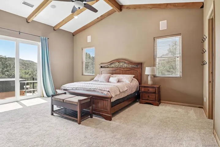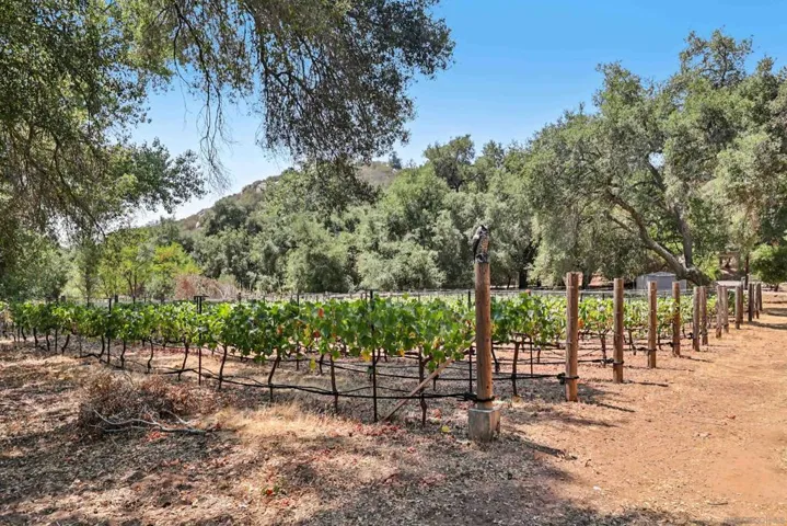 Variance granted 2-4 Units. Four Homes on 11+ Acres! Ideal for Multi-Generational Living or Investment. Welcome to Seven Meadows—a rare retreat in the rolling hills of Ramona. Framed by majestic oaks, a seasonal stream, and peaceful mountain views, this one-of-a-kind property features four residences, multiple income streams, and endless potential for multi-family living or investment. The main home is a 3BR/2BA single-level cabin-style residence with vaulted wood-beam ceilings, stone fireplace, and a gourmet kitchen with stainless appliances and knotty pine cabinetry. The primary suite opens to an outdoor entertaining area with a BBQ island, pizza oven, firepit, and spa. Downstairs, you will find the 2-car garage, RV Garage and storage rooms, plus the attached ADU: a 1BR/1BA apartment with its own entrance, full size kitchen and patio. A second home includes two separate units—a 3BR/2BA upstairs and a 2BR/1BA below—totaling approx. 2,900 SF with current rental income of over $5,200/month. Tenants are month-to-month, allowing flexibility for investors or extended family. The property showcases three vineyards with approx. 500 vines (Zinfandel, Tempranillo, Syrah, Grenache & Mourvèdre) previously producing 3,000 lbs of grapes annually, irrigated by a private well. Additional highlights include 125 fruit trees, chicken coop, multiple sheds, and a cleared area ready for horses, livestock, or future projects. An RV pad with hookups (previously rented for $1,500/mo) and a nearly complete 1BR AirBnB unit in the oaks offer even more income opportunity. Convenient west-Ramona location.