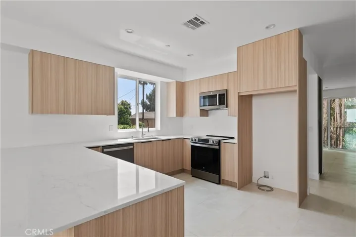 This newly built rear unit at 13944 Vanowen St in Van Nuys offers modern design and everyday comfort. The home has three bedrooms and two and a half bathrooms, spread out over a smart layout. It totals about 2,468 sq ft, including a private two-car garage and a laundry area with direct access to a private patio. The interior space, excluding the garage, is approximately 1,801 sq ft, ensuring a comfortable and private living environment. On the main level, you will find a bright open-concept living area that connects to a private balcony, ideal for relaxing or entertaining. Upstairs, the three bedrooms are located together, including a spacious primary suite. The living room also opens to a separate balcony, creating several outdoor areas and a smooth indoor-outdoor living experience. This home features high-quality finishes, lots of natural light, and a quiet location at the back of the property. It provides a rare chance to live in a modern, private, and peaceful setting. The home is also conveniently close to Valley Glen, major freeways, and everyday services, making it a great choice in the San Fernando Valley.