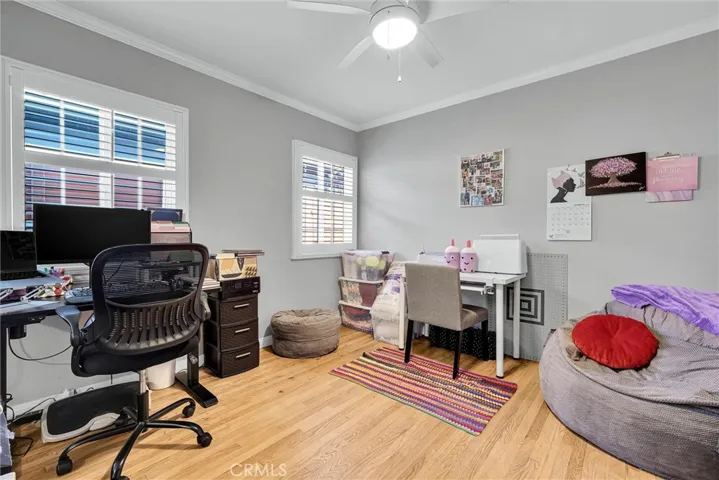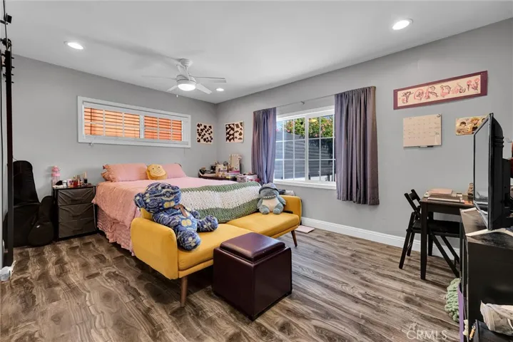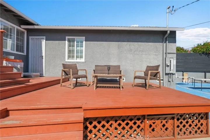 The expansive family room opens onto a generous deck, seamlessly extending your living space outdoors—perfect for gatherings under the California sun. In the backyard, enjoy your own private basketball court and a converted garage that offers flexible space for a home office, gym, or guest suite.