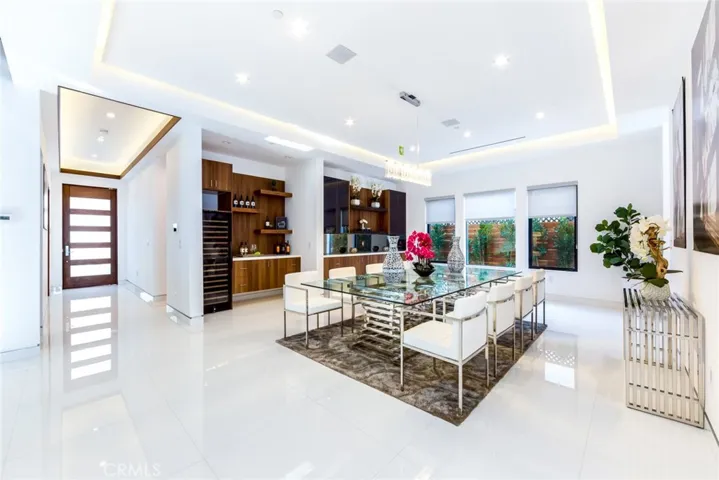 Modern luxury meets timeless design. Behind a sleek gated entrance this architectural gem showcases clean lines, warm wood accents and a bold twin-gable roofline. Inside soaring ceilings, a dramatic glass-railed staircase and open sun filled spaces create an atmosphere of sophistication and style. The chef’s kitchen features top of the line appliances and custom cabinetry, flowing seamlessly to a resort style backyard with a covered lounge, pool/spa and built-in barbecue. Upstairs spacious suites offer private balconies while the primary retreat includes a walk-in closet and spa inspired bath. Additional features; climate-controlled wine display, smart home technology and a secure two-car garage with ample driveway parking.