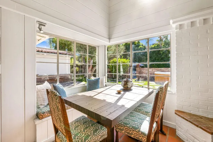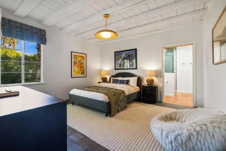 Welcome to this exquisite 1936 Spanish Colonial beauty, ideally located in the heart of the historic Movie Colony. Thoughtfully enhanced with modern upgrades while preserving its timeless character, this home offers the perfect blend of vintage charm and contemporary luxury. The recently renovated bathrooms have been reimagined with refined, modern finishes that complement the home’s classic aesthetic, creating spaces that are both elegant and functional. The kitchen, beautifully updated, maintains its original character while offering today’s conveniences. Beamed ceilings and deep red Saltillo tiles add warmth and authenticity, a hallmark of Spanish Colonial design. A newly constructed casita provides versatility for guests or extended stays, offering privacy and comfort. The backyard is a private desert retreat, featuring panoramic mountain views, a sparkling pool, an above-ground spa, a covered lounge with a classic brick firepit, and a dining area perfect for entertaining or relaxing under the stars. Set on an oversized corner lot surrounded by lush landscaping, citrus trees, and a privacy hedge, this home captures the essence of Palm Springs living. Just moments from Downtown Palm Springs, acclaimed restaurants, boutiques, and Ruth Hardy Park, this is an amazing opportunity to own a piece of Palm Springs history, reimagined for modern living.