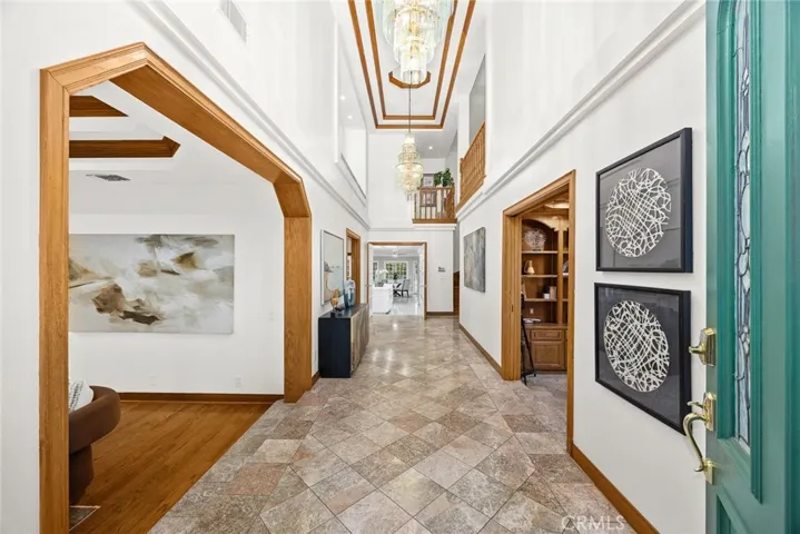 6,186 SQUARE FEET OF LIGHT-FILLED LIVING SPACE, SHOWCASING GLEAMING HARDWOOD AND MARBLE FLOORS, SOARING CATHEDRAL CEILINGS, A GRAND SPIRAL STAIRCASE, AND CRYSTAL CHANDELIERS. WALLS OF CRYSTAL-EDGED GLASS AT THE FRONT OF THE HOME CAPTURE AND REFLECT SUNLIGHT, CREATING A BRIGHT, AIRY ATMOSPHERE THROUGHOUT. COMPLETELY REMODELED FROM THE GROUND UP, INCLUDING ROOF, FLOORS, KITCHEN & BATHROOMS, GARAGE DOORS, APPLIANCES, DECKS, AND ON.
