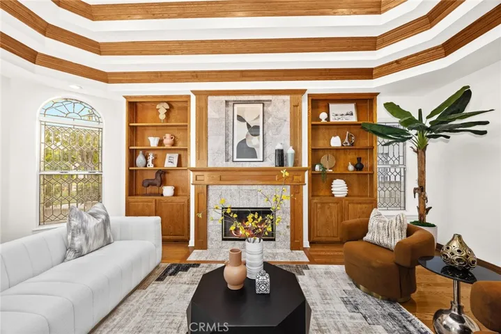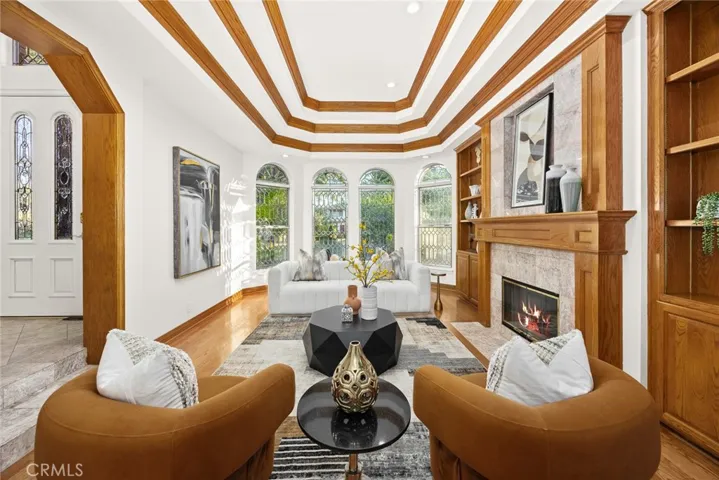 FORMAL LIVING & DINING ROOMS WITH RICH CUSTOM CEILING DETAILS AND TRADITIONAL COZY FIREPLACES