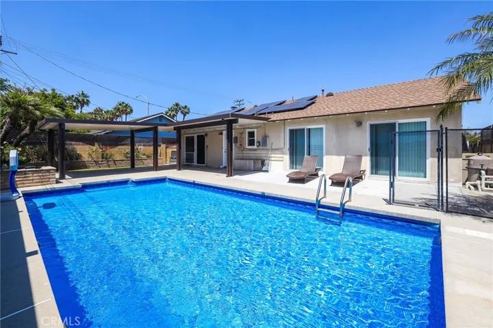 Welcome to your new home in the heart of Huntington Beach! This stunning 4-bedroom, 2-bathroom residence is nestled in a desirable cul-de-sac location, offering a perfect blend of comfort and convenience. The home boasts a range of amenities including a refreshing pool, air conditioning, and solar power for energy efficiency. The interior features a mix of laminate and tile flooring, creating a modern and stylish aesthetic. A cozy fireplace adds a touch of warmth and charm, while washer/dryer hook-ups ensure laundry days are a breeze. Central heating and dual pane windows provide year-round comfort. Step outside to a covered patio with lighting, perfect for evening relaxation or entertaining guests. A spacious two-car garage offers ample storage and parking space. Please note, the pool is not heated. This home truly has it all, offering a lifestyle of ease and sophistication in a prime location.