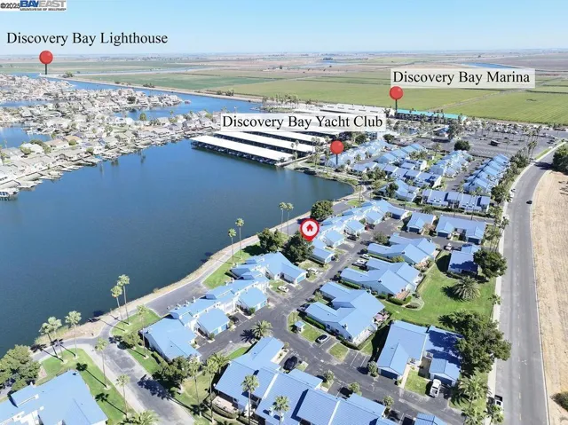 HARBOR BAY CONDO W/FABULOUS WATER VIEWS! RESORT STYLE LIVING OR PERFECT SECOND HOME – COMPLETELY RENOVATED WITH DESIGNER TOUCHES THROUGHOUT – THIS BEAUTIFUL UNIT OFFERS 1354 SQ FT WITH 2 BEDROOMS (ONE BED/BATH ON MAIN LEVEL), 2 FULL BATHS + BONUS LOFT (POSSIBLE CONVERSION TO 3RD BEDROOM) – Open concept living with water views from every room – Spacious living area w/high vaulted ceiling, luxury planked flooring, fireplace w/accent tile, dining area and slider door to spacious deck – Kitchen w/quartz counters, SS appliances + refrigerator and eat at bar – Both baths updated w/quartz counters, stall showers and tile flooring – Upper level offers Primary Suite w/high vaulted ceiling and balcony + Bonus Loft – Single car garage w/epoxy floor + assigned parking space in front of Unit – Walk along the waterfront path to the Marina, Yacht Club, Marina Bar & Grill or walk, jog, bike ride on levy for miles – Across the street you will find Discovery Bay Country Club for any golf enthusiast – Community Pool + Close by Community Center w/lap pool, Pickle Ball & Tennis – Live Where You Play – Many Discovery Bay Community activities throughout the year – All this and more…