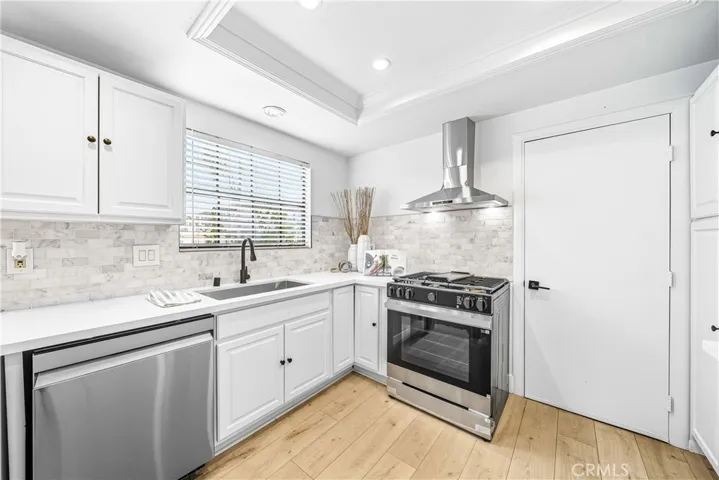 A freshly completed, meticulous remodel has transformed this end-unit condominium in Santa Ana into a thoroughly modern and elegant residence, now available for immediate occupancy. Beyond its private, gated front entry, discover a bright and open-concept floor plan designed for sophisticated living and effortless entertaining. The gourmet kitchen, featuring all-new appliances, flows seamlessly into the expansive living area, creating an inviting and connected atmosphere. No detail was overlooked in this comprehensive renovation. The home boasts brand-new, waterproof vinyl plank flooring and contemporary recessed lighting throughout, establishing a warm and stylish ambiance. The oversized master suite offers a private sanctuary, with double doors opening to a tranquil retreat. This haven includes a thoughtfully redesigned en-suite bathroom for the ultimate in comfort and style. The additional bathrooms have also been fully updated to provide a crisp, contemporary feel. Comfort is guaranteed year-round with the inclusion of central air conditioning. The property’s private outdoor spaces include a front porch with a gated entry and a courtyard that provides access to the one-car garage, where a washer and dryer are conveniently located. Further enhancing the value and convenience of this exceptional home, the Homeowners Association (HOA) covers water, trash, and sewer services. Seize this rare opportunity to own a beautifully upgraded, move-in-ready home in a prime location.