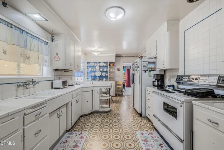 This custom-built Oxnard home offers timeless character, impressive craftsmanship, and endless potential. With 3 bedrooms, 2 full bathrooms, and 2,453 square feet of living space on a 5,662 square foot lot, this property blends vintage charm with features that were remarkably modern for its time.From the moment you arrive, the home’s unique architecture and welcoming front yard set it apart. The large windows and prominent chimney enhance its inviting curb appeal. Inside, you’ll find two spacious living rooms and two dining areas, offering abundant space for both relaxation and entertaining.To the left of the entry, the formal living room features oversized windows overlooking the front yard and a cozy fireplace. To the right, the dining room provides easy access to the kitchen, creating a perfect flow for gatherings.The family room exudes warmth with its rich wooden walls, brick fireplace, and built-in storage. The kitchen, complete with a vintage 1950s stove, patterned flooring, tiled countertops, and ample cabinetry, retains a nostalgic charm. A laundry chute, a rare feature for homes of this era, adds to its thoughtful design. The adjacent laundry room includes extra storage and a utility sink for convenience.Downstairs, two comfortable carpeted bedrooms share a full bathroom, while the upstairs primary bedroom connects directly to a full bath that also serves the hallway.The property also includes an oversized two-car garage with a built-in workshop and an enclosed exterior bonus room, ideal for creative projects, hobbies, or additional storage.Out back, a combination of concrete patio and grass offers a versatile space for gatherings.Conveniently located near parks, schools, and shopping centers, this one-of-a-kind property offers a blend of custom design, spacious living, and vintage charm, a true testament to craftsmanship and forward-thinking architecture.