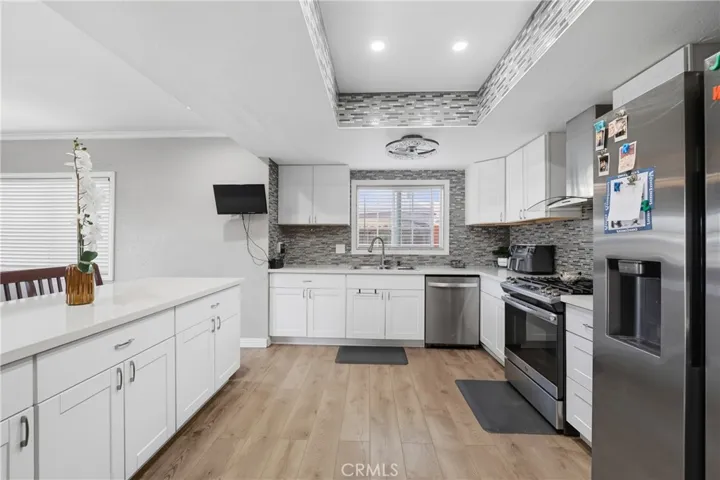 Featuring 5 Bedrooms, 4 Baths, this property offers a generous layout ideal for everyday living and entertaining. Bright and open kitchen with large center island, quartz countertops, plenty of cabinet space perfect for preparing family meals or hosting gatherings with friends. Adjacent to the kitchen, you’ll find a spacious family room with cozy fireplace and wet bar. Upstairs bedrooms, the master suite offers incredible potential (the bathroom has been completely gutted ready for you dream remodel and personal design touches) Dual pane windows throughout to provide comfort, energy efficiency and quiet enjoyment, Central AC/Heat, washer and dryer hookups. 2 Car attached Garage with direct access, situated on a large 10,250 sqft lot, ready for entertaining, gardening or future improvements such as a pool or ADU. Ample parking with an attached 2 Car Garage and extended driveway with plenty of space for up to 7 vehicles. Don’t miss this opportunity! Conveniently close to parks, shopping, dining and La Mirada Golf Course.