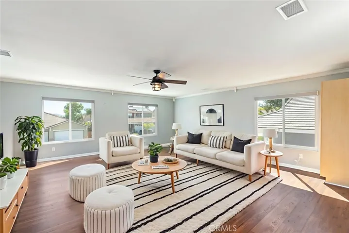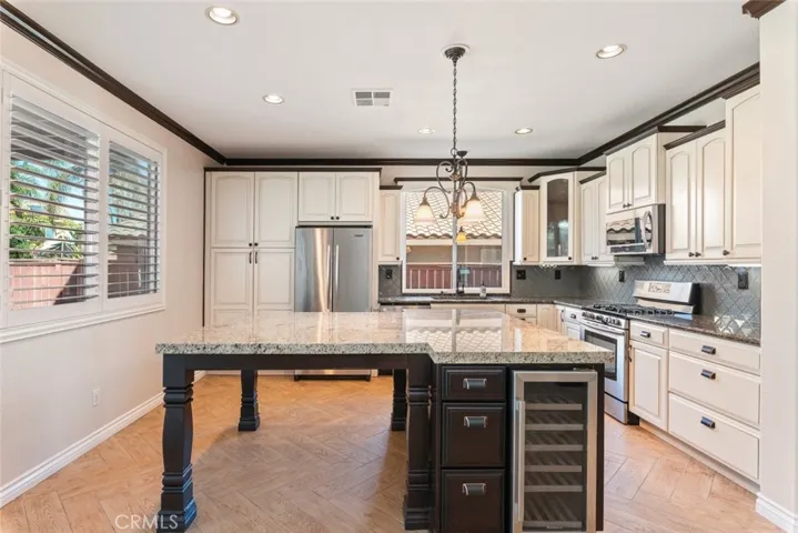 Nestled in one of the most sought-after communities, this beautiful home offers 4 bedrooms and 3 bathrooms, including a convenient full bedroom and bathroom downstairs—perfect for guests or extended stays. From the moment you arrive, you’ll be captivated by the magnificent curb appeal and inviting front porch—an ideal spot to relax and enjoy a peaceful afternoon. Step inside to discover an open and airy layout with vaulted ceilings and gorgeous tile flooring throughout. The formal living and dining rooms provide the perfect setting for entertaining family and friends, while the meticulously remodeled kitchen will surely impress even the most discerning chef. Featuring elegant cabinetry with soft-close drawers, sleek granite countertops, stainless steel appliances, a spacious island with dining counter, and even a built-in wine refrigerator, this kitchen truly has it all. Gather in the spacious family room, where a cozy fireplace creates the perfect backdrop for movie nights or quiet evenings at home. Upstairs, you’ll find two generously sized bedrooms, a full bathroom, and a large bonus room/den that can easily be transformed into a fifth bedroom, game room, or the ultimate man cave. The primary suite offers vaulted ceilings, a large walk-in closet, and plenty of natural light, creating a comfortable and serene retreat. Additional highlights include newer dual-pane windows, custom wood shutters, crown molding, QuietCool whole house fan, ceiling fans throughout, newer water heater, and both HVAC systems recently replaced for peace of mind and energy efficiency. Step outside and enjoy the beautifully designed backyard featuring a patio cover, concrete deck, firepit sitting area, and a detached patio space perfect for gatherings. Low-maintenance artificial turf, a dedicated garden area, and a side yard with potential boat or trailer parking make this yard both functional and fun. The 4-car garage comes equipped with cabinetry and built-in storage racks, and the tandem space offers an optional builder conversion for an additional downstairs bedroom if desired. And the best part? LOW TAXES and NO Mello-Roos! Enjoy all the wonderful amenities Horsethief Canyon Ranch has to offer, including community pools, parks, sports courts, clubhouse, fitness center, and more—all with a true sense of community and scenic mountain views. This is the home you’ve been waiting for—where comfort, style, and value come together beautifully.
