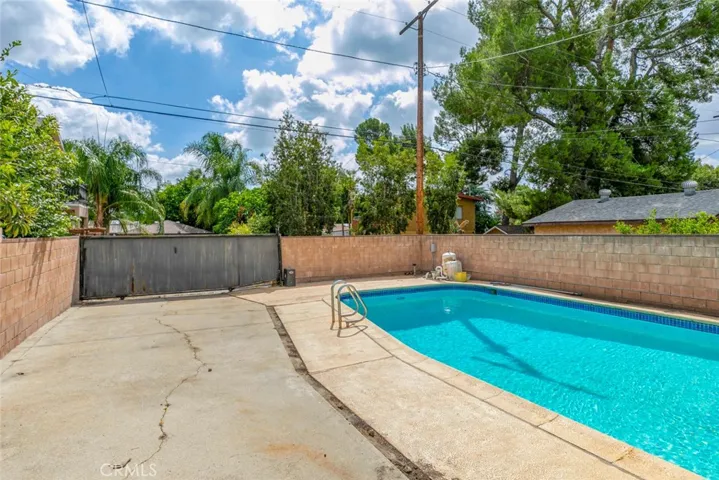 Come discover this unique opportunity located in one of the best parts of Sylmar on a nice, quiet residential street. This charming home features 2 bedrooms and 1 bathroom with 957 sqft of comfortable living space. Large open living room, delightful formal dining room, spacious kitchen with breakfast area, lots of closet space, light and bright open floor plan. Dual pane windows, new flooring, new recessed LED lighting, newer paint. The house is beautifully kept, loved and well taken care of. The one of a kind backyard offers a large covered patio that can be great for your outdoor gatherings or simply enjoying your morning coffee, grassy area, fruit trees, and a big sparkling pool that is an ideal place for large summer parties or to keep the family entertained on hot summer days and nights. The 2-car detached garage has perfect potential for an ADU with room to add, and separate private driveway from the back of the property with automatic gates, which could also serve for an oversize vehicle or RV parking. Located Close to El Cariso and Veterans Park, LA Mission College. Only a short distance to some of the best hiking, biking and horse riding trails. Close to freeways, public transportation, shopping, dining and entertainment. Don’t miss this very exceptional opportunity!