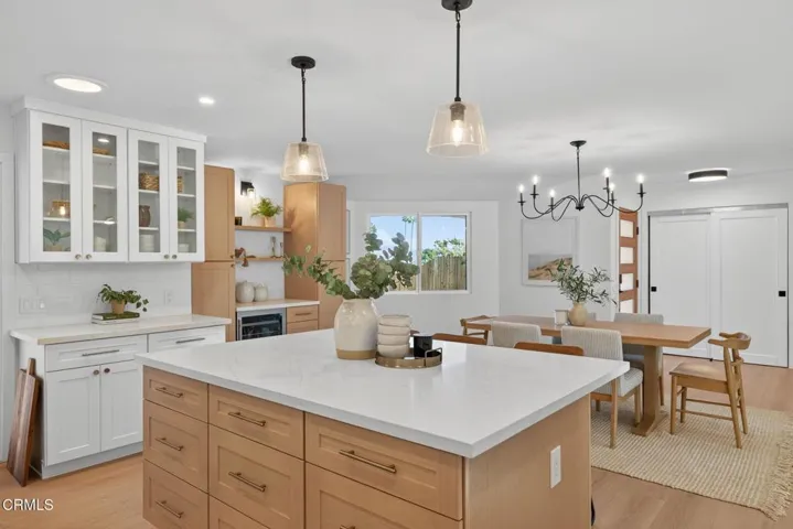 Welcome to your Camarillo Heights dream home!Tucked away on a peaceful cul-de-sac with scenic mountain views, this single-level 4-bedroom, 3-bathroom residence has been completely reimagined from top to bottom with every detail is NEW and designed to impress.Step inside to a stunning open-concept living space featuring luxury PVC luxury flooring, a cozy fireplace with a wood mantel, skylight, recessed lighting & ceiling fan, and sliding doors that fill the home with natural light and offer a peek at the sparkling pool. The living and dining areas flow seamlessly into the chef’s kitchen, showcasing a large quartz island, floating wood shelves, stainless steel DACOR luxury appliances, range hood, and a stylish butler’s pantry complete with wine fridge, for the ultimate gorgeous kitchen! The home features two primary suites, each with recessed lighting, ceiling fans, large closets, and beautifully finished en suite bathrooms highlighted by black accent fixtures, designer tile, and enclosed glass showers. The back primary bedroom looks out to the pool and mountain views! Two additional spacious bedrooms offer ample closet space and modern touches throughout.Outside, enjoy new stucco, fresh exterior paint with crisp white and black accents, a new paver driveway, and a striking modern wood front door all giving curb appeal! The backyard is an entertainer’s paradise with a fully renovated pool and spa, new equipment, pavers surrounding the pool, and a raised deck ideal for lounging or having a live band to host parties! Enjoy mountain views and nearly 10,000 square feet of outdoor living. Private courtyard areas for added charm on the side of the home, all NEW wood fencing was also completed. Additional upgrades include, NEW 3 zone HVAC system, a brand new 220 electrical panel, all NEW electrical wiring, NEW PEX plumbing, interior fresh paint and baseboards, a finished detached garage with laundry space! Did I mention the Solar panels, NEST thermostats, and all NEW windows and doors! This Camarillo Heights gem is truly turnkey and ready for its next family, come experience it in person to appreciate every detail as nothing was overlooked! See it today!