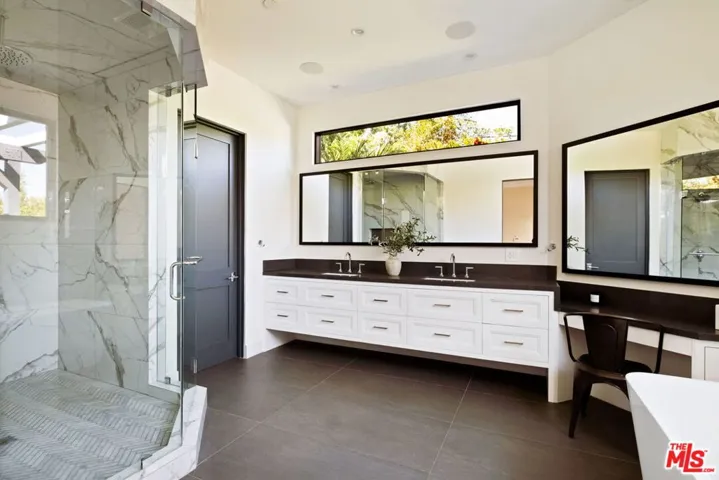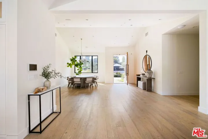 Presenting a stunning modern masterpiece in the heart of Woodland Hills, this newly constructed single-level residence, completed in 2020, embodies sophisticated luxury and timeless design. Perfectly positioned south of Ventura Boulevard on a picturesque, tree-lined street, this architectural showplace offers the ultimate in style, comfort, and California living.Behind private gates, this single-story residence showcases timeless curb appeal with smooth stucco, lush landscaping, and an expansive circular driveway leading to a covered entry. Inside, soaring vaulted ceilings, wide-plank European Oak floors, and custom built-ins create a seamless blend of warmth and sophistication.The gourmet chef’s kitchen features sleek stone countertops, a large center island with breakfast bar, and top-of-the-line stainless steel appliances. The inviting great room flows effortlessly to the resort-style backyard, creating an ideal setting for entertaining and indoor-outdoor living.The serene primary suite was meticulously designed with designer Portola paint and a beautiful fireplace for a tranquil ambiance. It also offers direct access to the backyard, a spacious walk-in closet, and a luxurious spa-style bath with soaking tub, glass shower, and dual vanity. Two secondary bedrooms and a third private suite (all with ensuite bathrooms and walk in closets) perfectly situated for guests or a playroom complete the layout. A state-of-the-art movie theater with elevated seating and designer lighting provides the ultimate at-home entertainment experience.Step outside to your private oasis with a sparkling pool, elevated spa, outdoor BBQ kitchen, firepits, and a full pool bathroom with showerperfect for al fresco gatherings. Additional features include an attached two-car garage, owned solar panels with battery backup, and a Control4 smart home system controlling everything from lighting and security to music and window coverings all at the touch of a button or your phone. This exceptional gated property captures the essence of luxury and modern Los Angeles living with easy access to schools, trails, and the 101.