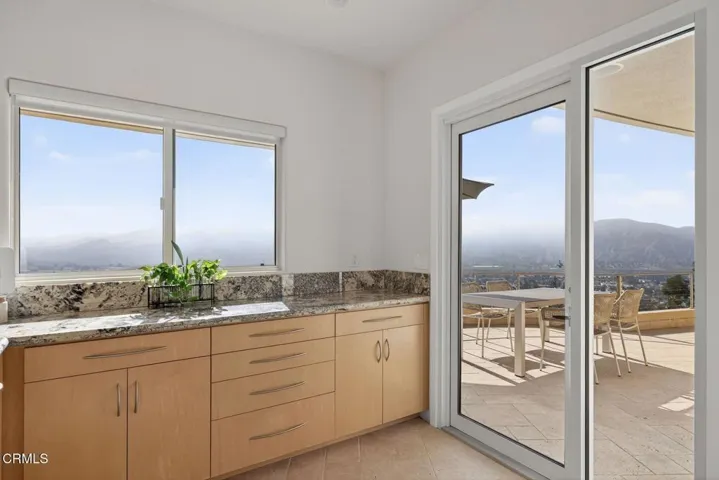 Tucked into the hillside of Santa Paula, 864 Montclair is a breathtaking, one-of-a-kind example of Frank Lloyd Wright’s organic architecture. Designed by Wright’s protege, Richard Martinez, the home embodies harmony between structure and nature–built into the mountain, not atop it. Its curved design follows the natural hillside, creating a serene flow with the land and offering sweeping views of Santa Paula, the surrounding mountains, and the ocean.The main level welcomes you with dramatic floor to ceiling windows, allowing light to cascade throughout. Skylights flood the home with natural daylight, illuminating the primary spaces and the lower level below. The entry-level primary suite and bathroom features a fireplace and a walk-through closet, designed for comfort and tranquility.Downstairs, three additional bedrooms each have dedicated bathrooms, providing privacy and retreat. A four-car garage with a custom turntable honors Santa Paula’s car culture. From the expansive balcony, enjoy views of small planes landing and taking off, adding to this hillside sanctuary’s charm.Never before offered for sale, this extraordinary home has been lovingly maintained by its original owners. Photos cannot capture the remarkable light, intentional design, or peaceful energy that make this residence truly unique.