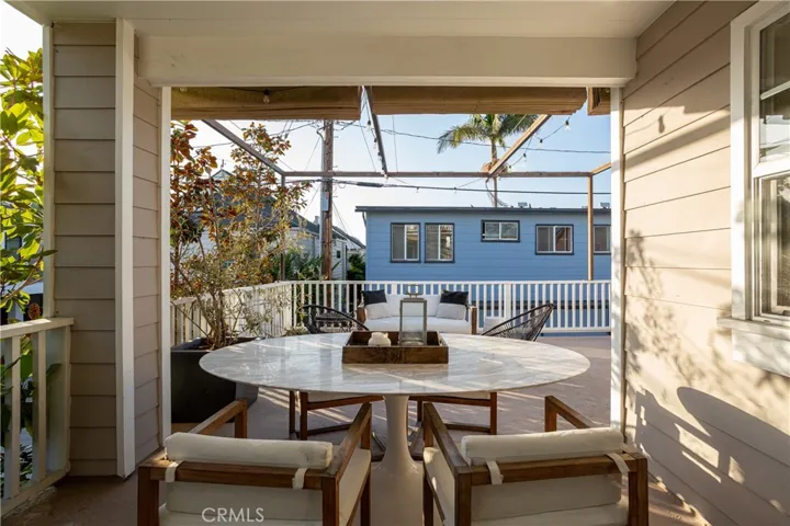 Located on the coveted Flower Streets of Corona del Mar, this stunning home sits on the ocean side of PCH, perfectly positioned in the heart of the Village. Rare in design, this rear unit lives like a front home, offering both privacy and space with its wide side alley, attached two-car garage, and two generous decks. Inside, three bedrooms and three en-suite baths blend modern luxury with coastal charm. The primary suite features a cozy fireplace, spa-inspired bath, and a private rooftop deck with sweeping views—your own sanctuary above the Village. Light pours through every space, accentuating the French oak floors and the bright, open-concept living area. The crisp white kitchen flows effortlessly into the great room and onto a lushly landscaped deck—complete with retractable cantilevers that transform it into an all-season entertaining retreat. No detail has been overlooked, with high-end finishes throughout, including Viking appliances and Carrera marble accents. Whether as your full-time residence or a refined coastal escape, this turn-key home captures the quintessential CDM lifestyle—vibrant, elegant, and distinctly inviting.