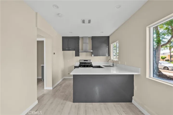 The MAIN HOME at 8900 HAZELTINE AVE offers approximately 1,015 SQ FT with 3 BEDROOMS AND 1 BATHROOM. Designed for MODERN LIVING, this home was UPDATED IN 2023 with WATERPROOF LAMINATE FLOORING, DUAL-PANE WINDOWS, RECESSED LIGHTING, NEW HVAC, NEW ROOF, COPPER PLUMBING WITH ABS UPGRADES, UPGRADED ELECTRICAL PANEL, a REMODELED KITCHEN featuring QUARTZ COUNTERTOPS, and CUSTOM CABINETRY. The bright, functional layout and open flow create a comfortable, MOVE-IN READY SPACE that feels both FRESH AND INVITING.