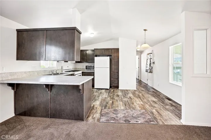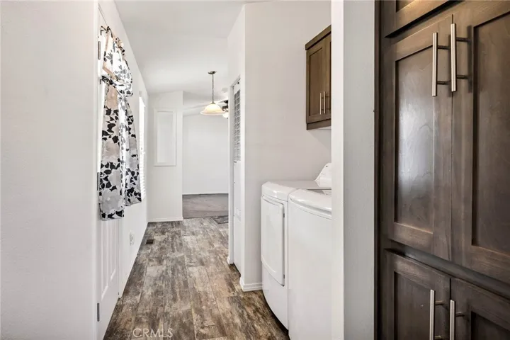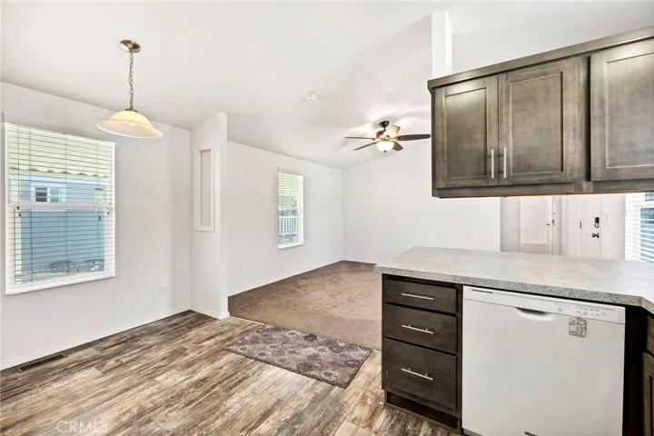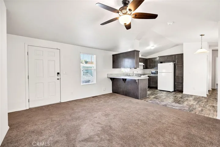Welcome to Fairview Park Estates, a 55+ community in East Hemet! This beautiful 2020-built home offers 2 bedrooms and 2 bathrooms across 868 sq. ft. of comfortable living space. The open floor plan features a spacious living area that flows seamlessly into the kitchen and dining area, perfect for entertaining or everyday living. The kitchen boasts modern cabinetry, ample counter space, and granite-style finishes. Each bedroom is located on opposite ends of the home for added privacy, with the primary suite offering a large closet and private bath. Enjoy peaceful mountain views from your covered carport or from the rock scaped yard, complete with a small fenced area and storage shed. The home also features an accessibility ramp and a quiet location within the park. Fairview Park Estates is a 55+ community offering a clubhouse with pool and spa, library, laundry and recreation area. Low space rent of approximately $630 per month includes access to all park amenities. Move-in ready and meticulously cared for — this home combines modern comfort with affordable senior living in the heart of Hemet.