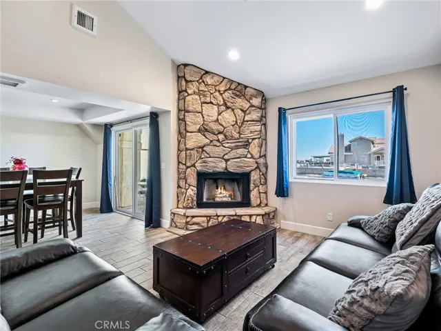 Enjoy resort-style living in this beautiful, fully furnished condo right on the water in Silver Lakes. Walk through a private entry into a bright, open home with porcelain tile floors, upgraded iron handrails, and a cozy rock fireplace. The kitchen has been completely redone with new cabinets, granite counters, and stainless steel appliances, including a side-by-side refrigerator. The master bathroom has double sinks and granite counters.