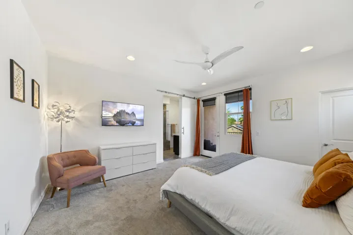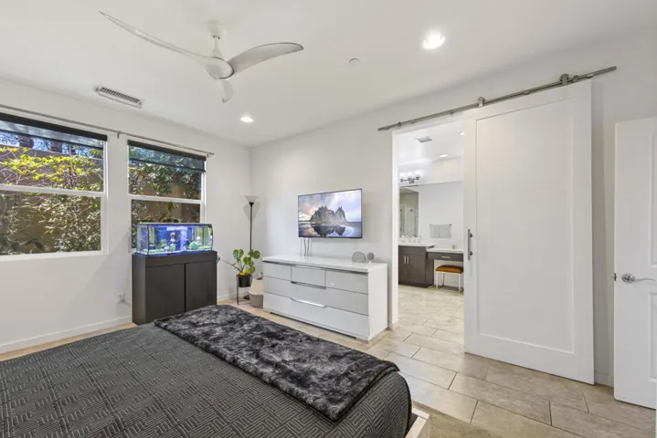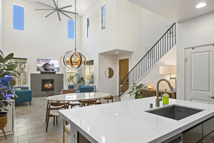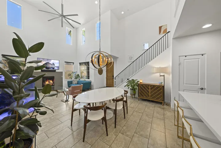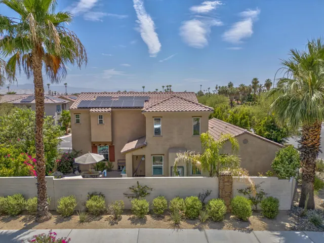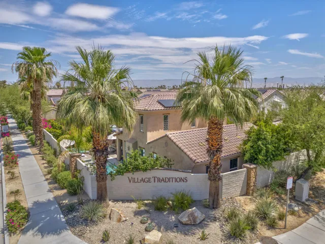 Tucked inside the gates of Village Traditions, this rare stand-alone home captures the Palm Springs lifestyle – modern, effortless, and unforgettable. BONUS: Now offered furnished per inventory, adding significant value for the perfect buyer. Just a short stroll to all that downtown Palm Springs has to offer such as boutique shopping, acclaimed dining, and vibrant entertainment. It’s the perfect blend of convenience and retreat. Perfectly positioned on an oversized corner lot, it offers privacy, panoramic mountain views, and a sparkling saltwater pool and spa. Inside, you’ll find a thoughtfully designed 3BR/3BA layout with dual primary suites (one upstairs, one down), airy vaulted ceilings, and seamless indoor-outdoor flow. The upstairs loft provides flexible space for a gym, office, or cozy lounge. The kitchen is sleek and sophisticated with quartz counters and stainless appliances, while owned solar, a soft water system, and energy-efficient windows keep life comfortable and low-maintenance. Outside, enjoy smart pool controls, Sonos sound, and a private dog run. HOA covers internet, water, and trash. A two-car garage and guest parking complete this picture of contemporary Palm Springs living.