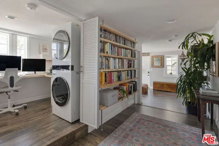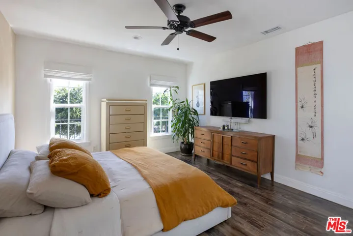 Silver Lake living feels exquisite in this 1930 Spanish, reimagined with modern sensibility and enjoying sweeping hillside views. The tri-level layout balances original charm and smart updates, featuring bright, airy rooms with effortless flow. In the living room, a large picture window frames the hills in golden light; the dining room centers on a grand arched window, a perfect backdrop for gatherings. The open kitchen is finished with waterfall quartz counters, stainless appliances, counter seating, and abundant storage. Three bedrooms and two updated baths provide versatility, including a lower-level suite with private entrance, full bath, and laundry, ideal for guests or creative work.Lush outdoor space expands across multiple terraces: a deck above the garage for sunset cocktails, a rustic stone patio for relaxing, and a serene garden retreat.From this street-to-street lot, enjoy proximity to the Reservoir, Meadow, Silver Lake Wine, Whole Foods, and local favorites along Glendale Boulevard.