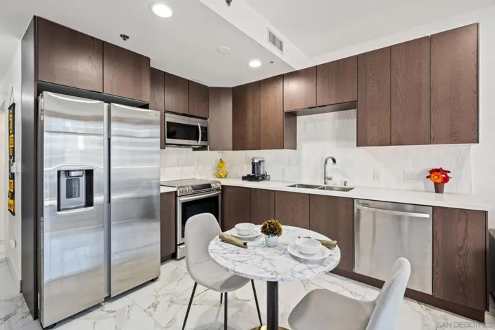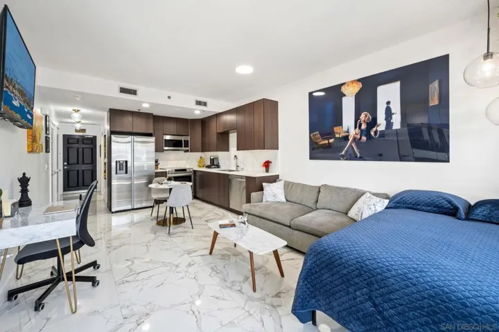 Beautifully renovated East Village studio just steps from Petco Park. Thoughtfully designed with an open, airy feel, this home features oversized windows that flood the space with natural light and frame city skyline views. Modern finishes include porcelain tile floors, updated lighting, a dual-sink bath, a stunning step-in tiled shower, and a sleek kitchen with new stainless appliances and quartz counters. Perfect as a first home, investment, or city retreat in one of Downtown’s most walkable neighborhoods. The unit comes with additional storage and 1 parking space. Located in the heart of East Village, Diamond Terrace places you just steps from San Diego’s iconic Petco Park. Residents enjoy stadium views from the building’s 14th-floor rooftop deck — the perfect spot for entertaining or socializing with neighbors. Diamond Terrace also offers a variety of resident amenities, including a rooftop BBQ area, a stylish community room, and a fully equipped fitness center. With its prime location, you’re only moments from East Village’s trendiest restaurants, bars, boutique shops, and entertainment — offering an unbeatable urban lifestyle in one of Downtown San Diego’s most dynamic neighborhoods.