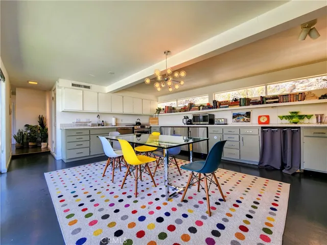 Property is leased till the end of September. Price will fluctuate in season. Weekly Rentals are Acceptable. Welcome to Your Dream Escape in Iconic Indian Canyons — the absolute coolest furnished rental homes in the posh Indian Canyons neighborhood of South Palm Springs. Located at the base of the mountain with stunning mountain views, privacy, and unmatched character, this home sits on an expansive 18,000 square foot lot and is rumored to have once served as the clubhouse for Canyon View Estates. This Mid-Century architectural treasure features a magnificent 8-beamed umbrella ceiling and clerestory windows that flood the great room with natural light. The open and flexible floorplan offers ample space to relax or entertain. Step into the game room with a ping pong table and vibrant wall mural, or unwind in the beautiful living room with large picture windows that frame views of the sparkling swimming pool. The primary bedroom offers peaceful hillside views, a spacious walk-in closet, and an ensuite bathroom. The guest room enjoys access to a spa-style bath with a huge walk-in shower and an in-shower picture window overlooking the desert landscape. The updated kitchen and dining area feature peekaboo hillside views and open to a backyard oasis nestled against the hillside, complete with pool, spa, shaded gazebo, gas firepit, and lush palm tree scenery. Fully furnished and turnkey move-in ready, the beds are sooo comfortable, smart TVs with high-speed Wi-Fi, in house washer and dryer, kitchen fully stocked with pots and pans, dishes an air fryer and Keurig coffee maker. There is a workspace in the primary bedroom that can be moved to the kitchen for a communal workspace, solar blinds and black out curtains and lots of private parking. The property includes 32 solar panels and a 10kWh battery for major offset on electricity costs. Just minutes from downtown Palm Springs, the famous Murray Canyon Trail hike, and the exciting new Palm Springs Surf Club wave pool, this one-of-a-kind property is a true desert escape with unforgettable charm and lifestyle appeal. This beautiful furnished also offers a pull out sofa bed to sleep a total of 6 people. This long-term rental is available now through the end of the year. Traveling nurses welcome!