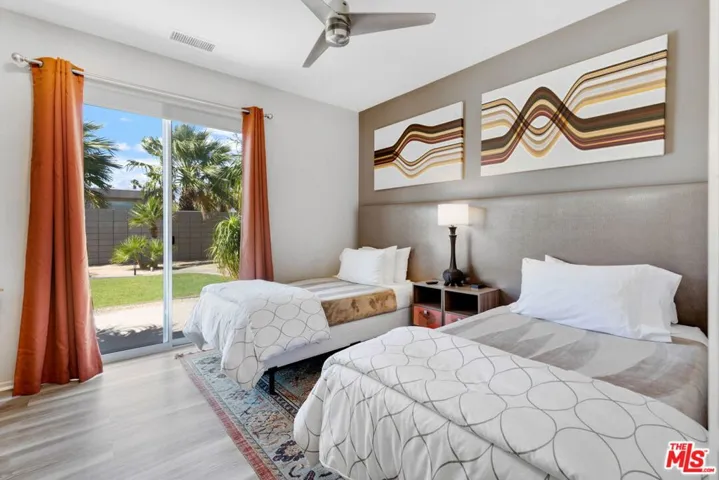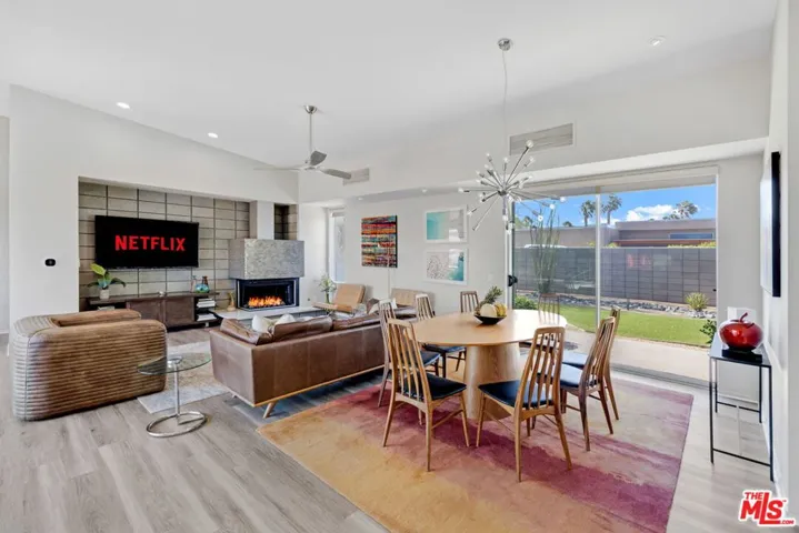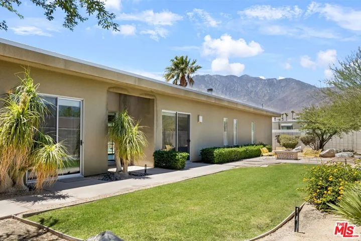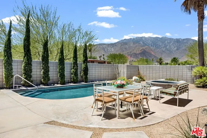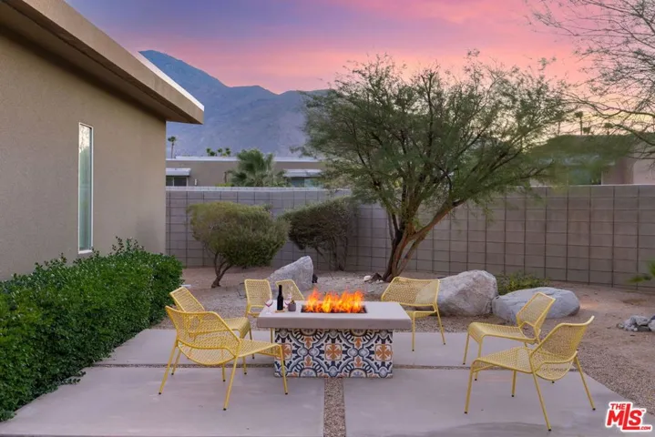 Welcome home to modern desert living at its finest. This stunning Cipriano model home sits in the highly coveted Murano community of Palm Springs, a neighborhood known for its clean lines, mountain views, and timeless mid-century style. Designed by Jim Chioffi, this residence blends architectural beauty with effortless comfort, offering the best of both worlds: classic Palm Springs flair and modern-day luxury.Inside, natural light pours through 8′ sliding glass doors and clerestory windows, illuminating polished concrete floors, stainless steel appliances, and sleek quartz countertops. The open layout is perfect for both relaxing and entertaining, with a custom fireplace anchoring the main living space in warmth and sophistication. Each of the two primary suites feels like a private retreat, complete with walk-in showers and thoughtful design touches throughout. A third bedroom and flexible den/office, with two twin beds, make it easy to host family and friends. New solar. Step outside and discover your own desert oasis: a private pool and spa surrounded by a block wall for privacy, framed by the stunning San Jacinto mountain backdrop. Every detail, from the covered walkway entrance to the designer finishes, has been crafted for beauty, comfort, and ease of living. Whether you’re searching for your full-time sanctuary, a stylish second home, 1090 Azure Ct offers that rare combination of design, location, and lifestyle that defines the true Palm Springs experience.
