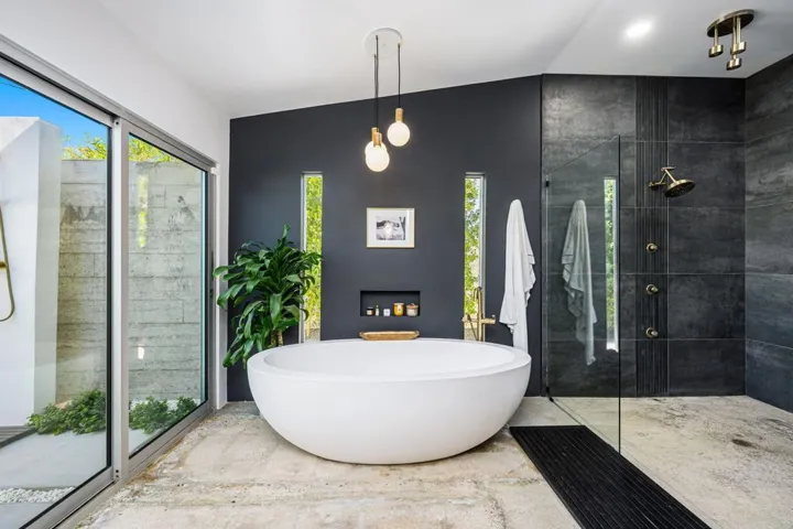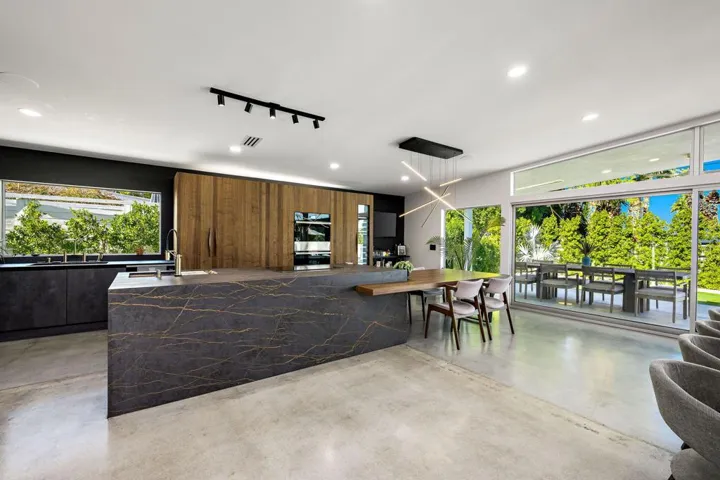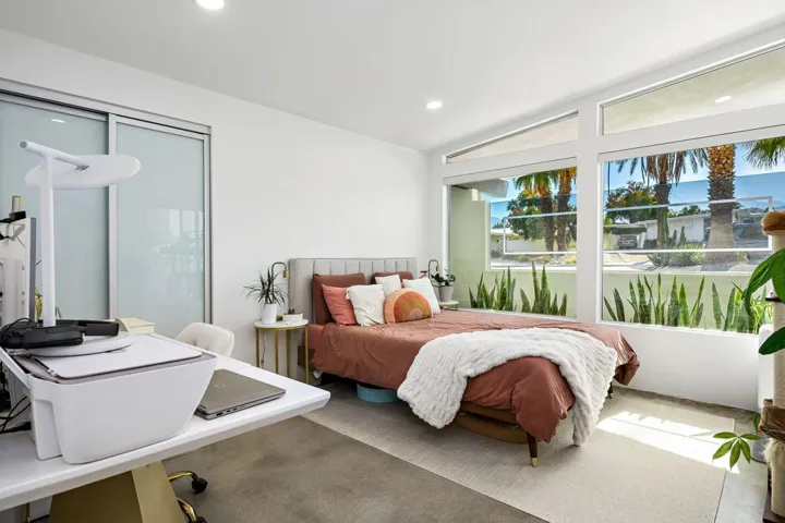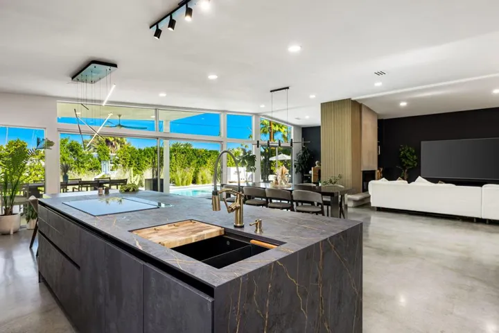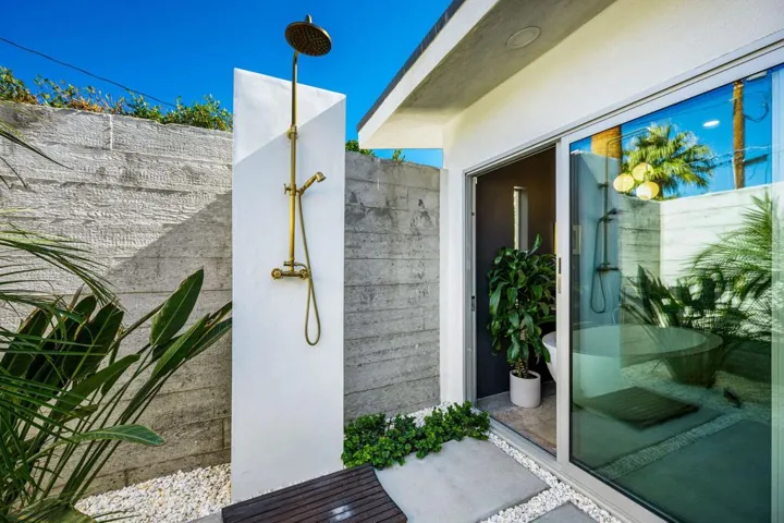 73286 Goldflower Street is a stunning mid-century modern gem by renowned architect Charles Du Bois, once the private retreat of Hollywood legend James Franciscus. Featured on the 2025 Modernism Week Signature Home tour, this meticulously restored and expanded residence blends its iconic heritage with modern luxury. Nestled on a quiet cul-de-sac near El Paseo, this fully furnished home offers the ultimate in south Palm Desert living.A multi-year renovation, completed in 2024, expanded the home to over 3,000 sq. ft., including a seamless 1,000 sq. ft. addition. Du Bois’s signature indoor-outdoor flow is enhanced with expansive glass walls, clean architectural lines, and abundant natural light, perfectly capturing California Modernism. High-end finishes, warm walnut accents, and sleek modern tile work elevate the interiors, while smart home technology integrates effortlessly. Every detail, from the restoration of original elements to the selection of contemporary materials, has been carefully curated to honor the home’s historic significance while offering today’s most desirable comforts.The oversized primary suite is a private retreat with a zen garden, outdoor shower, walk-in closet, and built-in gym. An additional en suite guest room offers privacy, while two guest bedrooms share a spacious bath, making it ideal for hosting. A dedicated laundry area adds everyday convenience.Designed for relaxation and entertainment, the open-plan living space includes a great room with a pool table, multi-room Sonos speakers, and Phillips Hue lighting, all controlled by voice, phone, or wall-mounted panels.The entertainer’s backyard features a covered lounge, built in heaters, fire pit, and multiple courtyards, maximizing indoor-outdoor living. Thoughtful landscaping and architectural details create a harmonious retreat.This architectural masterpiece in south Palm Desert presents a rare opportunity to own a piece of history close to El Paseo, shopping and everything you may need.