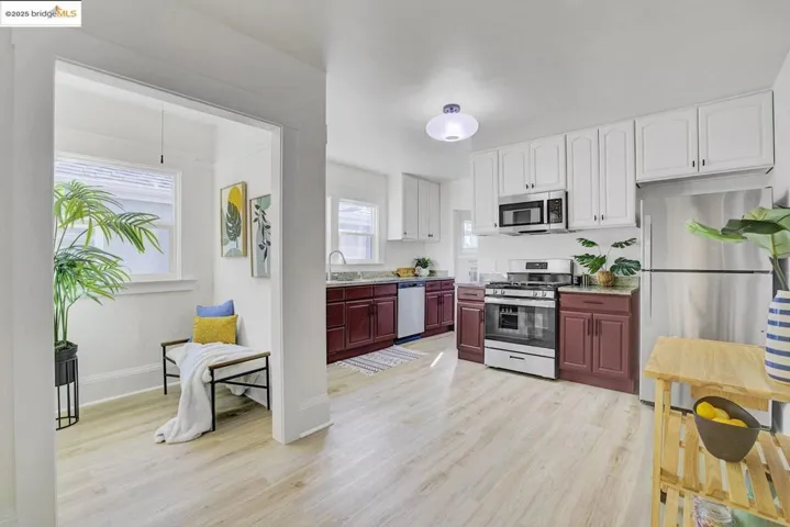 Impeccable modern updates meet classic Oakland charm in this top-to-bottom renovation. This stunning home blends light, airy spaces with a warm, cozy atmosphere. Inside, sunlight pours through new dual-pane windows, illuminating gleaming new floors and stylish lighting. The freshly painted interior is a flawless canvas for your style. The beautifully appointed kitchen features new stainless steel appliances, while both bathrooms have been stylishly remodeled to feel pristine and clean. Move in with total confidence knowing the most critical systems are new. This comprehensive renovation includes a new roof, all new energy-efficient windows, and fresh exterior paint, ensuring years of worry-free living. Perfectly situated in the dynamic NOBE neighborhood, the best of the Bay is at your fingertips. Commuting is a breeze with Ashby & MacArthur BART stations and major freeways just moments away. You are surrounded by the East Bay’s best lifestyle amenities, from the culinary destinations of Temescal and Rockridge to legendary grocery shopping at Berkeley Bowl West and the retail hub of Bay Street. This is turnkey living in an unbeatable location.