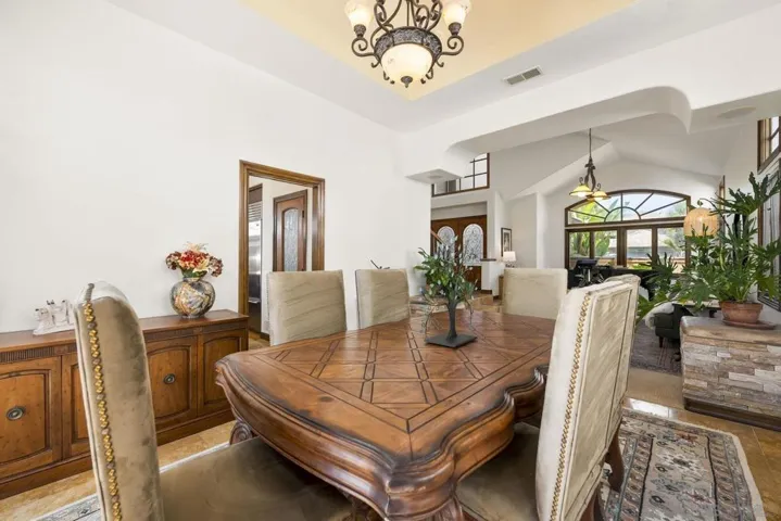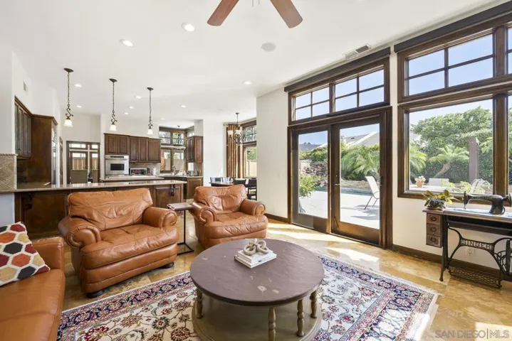 Welcome to this beautiful 4 bedroom, 3 bathroom home located in the highly desirable Morgan Run/La Valle Community of Rancho Santa Fe. This light and bright home features soaring ceilings and an open floor plan designed for comfort and entertaining. The spacious living and dining areas flow seamlessly, highlighted by abundant natural light and timeless finishes. The kitchen offers ample counter space, generous storage, and a convenient layout for both everyday living. The home includes a large primary suite with a private bath and walk-in closet, along with two additional bedrooms upstairs. The downstairs bedroom offers incredible versatility—it features custom wood built-in shelves, a Murphy bed, and a private entrance, making it an ideal home office, guest suite, or multi-purpose space. Set on an ideal cul-de-sac location, the backyard is a private retreat with a sparkling pool, built-in BBQ, and cozy fireplace—perfect for entertaining or relaxing year-round. The home also comes with the benefit of paid-off solar, offering energy efficiency and cost savings. Morgan Run/La Valle is one of Rancho Santa Fe’s most sought-after neighborhoods, offering close proximity to top-rated schools, golf and country club amenities, dining, shopping, and coastal beaches. This property blends elegance, flexibility, and an unbeatable location in North County San Diego.