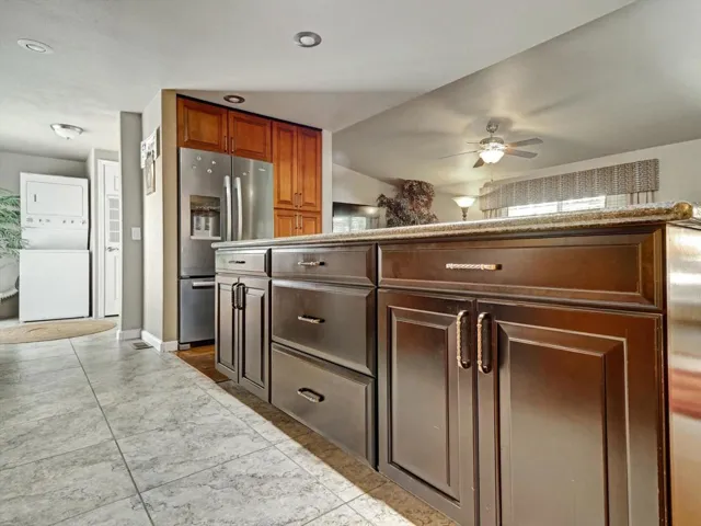 Welcome to desert living at its finest in this stunning 3-bedroom, 2-bathroom manufactured home spanning 1,560 square feet of thoughtfully designed space. This completely renovated treasure seamlessly blends indoor and outdoor entertainment with an open floor plan that flows effortlessly throughout. The heart of this home features a spectacular granite island that’s practically begging for your next dinner party or casual morning coffee. Whether you’re whipping up a feast or just need extra workspace, this kitchen centerpiece delivers both style and functionality. A cozy fireplace offers warmth and ambiance to the living area, creating the perfect gathering spot for family and friends. The split floor plan offers ultimate privacy, with the luxurious primary bedroom featuring an immense walk-in closet and an impressive tile shower that transforms your daily routine into a spa-like experience. Two ADDITIONAL bedrooms PLUS a dedicated office space provide flexibility for work-from-home needs, guests, or hobby rooms. Storage enthusiasts will appreciate the abundant built-in storage solutions throughout the home. Double-pane windows ensure year-round comfort while maintaining energy efficiency. Step outside to your private oasis featuring a gorgeous Pebble Tec saltwater pool and spa with elegant water features. Retractable sun blinds provide customizable shade, while an outdoor shower adds convenience for post-swim refreshing. The extremely private outdoor space is perfectly designed for entertaining, from intimate gatherings to larger celebrations. Located near renowned Eisenhower Health and the upscale El Paseo Shopping District, you’ll enjoy convenient access to world-class medical care, dining, and retail therapy whenever the mood strikes. Living in this wonderful community means enjoying low homeowners’ association dues that surprisingly cover FREE golf, free internet and trash pickup, a clubhouse with a restaurant, a lounge, 18-hole executive golf course and pro shop, three community pools, hot tubs and an exercise room. Add a billiard room, card room, indoor shuffle board, tennis courts, pickle ball courts, library, recreation room, and many active clubs to realize all that PDGCC offers for your perfect desert home. With a variety of activities, every day can be as active or relaxed as you desire. This incredible home won’t last long! Please call for a showing.