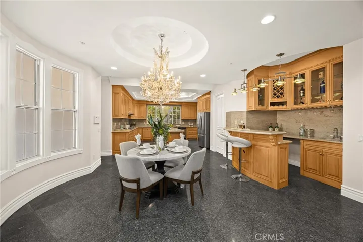 This Gorgeous & Elegant 2 story custom estate located on Beautiful and Quiet neighborhood with distinguished Arcadia School District. It features private security gated, stately 2 column studded entrance leads to a grand foyer under cathedral ceiling featuring a magnificent crystal chandelier. Downstairs of the main house: wood-paneled library; marble-floored living room; large newly remodeled built-in shelf for ample storage spaces . Family room with a newly build wet bar connected to the fully remodeled gourmet kitchen behind dining room and a fully remodeled separate wok kitchen. 2 bedroom suites, plus a 1/2 bath as the powder room for guest. Upstairs: 2 hard wood staircases connected downstairs; 4 bedroom-suites with common area for study or recreation; Jacuzzi tub, steam room, 3 walk-in closets and retreat area inside the master suite against with beautiful view of San Gabriel mountains. Palm trees surround the detached guest house(1500 sqft) with permit for entertainment , Sparkling pool and water fountain. Refinements such as marble, stone, custom-made cabinetry, drapes and built-ins are evident throughout with many stained-glass windows. Front yard features circular driveway and garden with year-round roses and fruit trees. 3-car attached garage plus plenty of car parking space. Walking distance to schools, super-market and multi-cultural eateries. A Great opportunity to own this Luxurious Home !!!