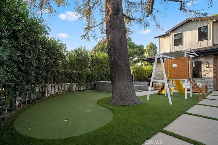 Nestled in the coveted Chandler Estates neighborhood of Sherman Oaks, this newer construction home sits on a gated corner lot, strategically setback from the street to create a private oasis. Designed for modern living, the spacious open-concept main level is anchored by a show-stopping chef’s kitchen equipped with top-of-the-line JennAir appliances and a massive island with seating. Floor-to-ceiling sliding glass doors in both the living room and formal dining room open seamlessly to the backyard, effortlessly extending your living space outside. Step outside to a serene retreat surrounded by mature privacy hedges and highlighted by a heated pool/spa, plus a built-in BBQ with bar seating – the ideal space to entertain or unwind after a long day. The gated front yard also impresses with a built-in fire pit and putting green. Upstairs, four generously sized ensuite bedrooms ensure everyone has their own private retreat, while a dedicated laundry room offers convenience. The sophisticated primary suite features a private balcony, custom walk-in closet and spa-inspired bathroom, complete with a soaking tub, oversized rainfall shower and double vanity. Additional highlights include a main-level ensuite bedroom, high ceilings throughout, water softener system, reverse osmosis with instant hot water and added alkaline, a two-car garage with an EV charger outlet and smart home system with built-in speakers, security cameras, a Nest thermostat and more. Ideally located just moments from Westfield Fashion Square, Ventura Boulevard’s premier shopping and dining, and top private schools including Notre Dame, Harvard-Westlake, and Campbell Hall.
