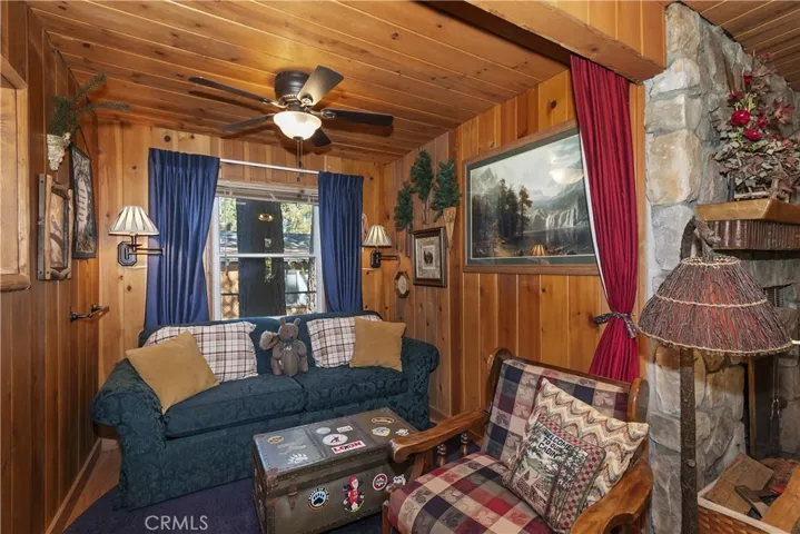 Welcome to 40256 Dream Street — a timeless Big Bear cabin full of rustic charm ~ This classic 3-bedroom, 2-bath home sits on a generous 5,330 sq ft lot and hasn’t been on the market since 1998 ~ Originally built in 1950, the property boasts vintage mountain character ~ Inside, this home blends natural light with warm wood and log accents, a floor-to-ceiling stone fireplace, and clawfoot tubs in both bathrooms — including an ensuite with elegant slate wainscoting and a stackable washer and dryer ~ The kitchen features tile countertops, and opens to a cozy dining area, with nook ~ Step outside to enjoy a covered porch with recessed lighting, great for relaxing evenings under the pines ~ The pea-graveled wraparound driveway provides expansive parking, with potential RV and boat storage ~ Whether you’re searching for a serene mountain retreat, a full-time residence, or a vacation rental investment, this cabin on Dream Street delivers the quintessential Big Bear experience — quiet, peaceful, and full of character.