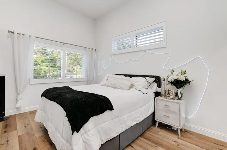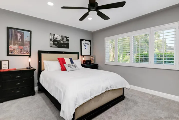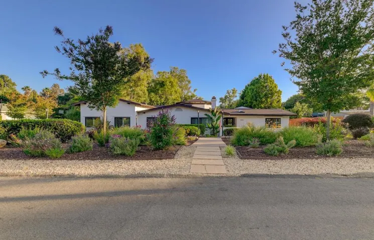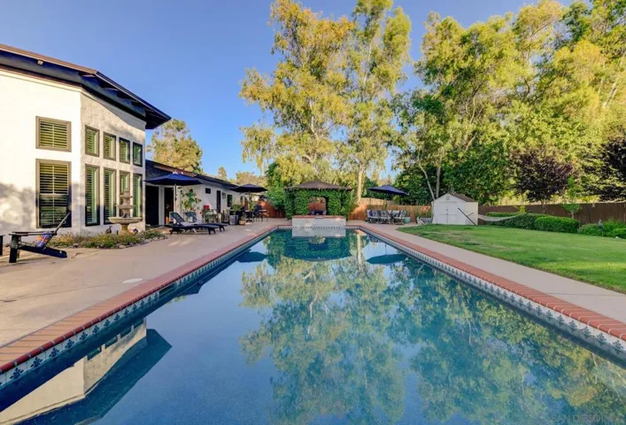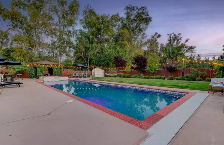 Welcome to this beautifully redesigned single-story home in the heart of Poway, where modern updates meet laid-back California living. Featuring 5 spacious bedrooms and 4 luxurious baths, this light-filled home offers an open floor plan designed for both comfort and connection. Wide-plank LVP flooring flows throughout, complementing the stylish kitchen and bathrooms finished with sleek, contemporary touches. Large windows and skylights fill the space with natural light, creating a warm, inviting atmosphere. Step outside to your private backyard retreat complete with a sparkling saltwater pool, refreshed equipment, and a vibrant orchard of apple, lime, lemon, orange, guava, peach, avocado, and grapevines. Perfect for entertaining or enjoying peaceful moments in the sun. Enjoy leased solar to help keep energy costs low, so you can relax in both style and sustainability. This turnkey home delivers the ideal blend of style, upgrades, and outdoor charm all in the highly desirable Poway Unified School District. Extensive upgrades include lifetime warranty windows (2023), a 50-year roof (2022), skylights (2022), interior and exterior paint with a 5-year warranty (2022), full home plumbing re-pipe (2022–2023), two AC units, two furnaces, tankless water heater, and water softener (all 2022), plus saltwater pool conversion and equipment refresh (2023). This is Poway living at its finest move-in ready and made for the good life. Don’t miss it!