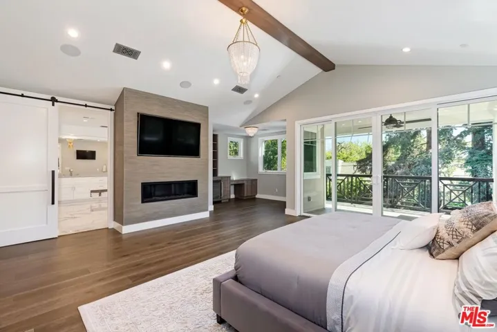 Eight years New gated Traditional 5 bedrooms + 5.5 bathrooms Smart home in the heart of Toluca Lake. Impeccably designed, this approximate 4,200 square foot home with European oak floors & exquisite finishes offers an open floor plan for ultimate indoor-outdoor California living. A gourmet Chef’s dream kitchen with stunning island has stainless steel high-end appliances including built-in coffee maker and 2 dishwashers. The family room with fireplace and built-ins opens up completely to a lovely patio, landscaped private yard, redwood tree, built-in BBQ, pool and spa. The Primary bedroom offers vaulted ceilings, 2 walk-in closets, sitting area, built-ins with subzero fridge, fireplace, surround sound system, spacious private covered balcony and bathroom with double vanities, free standing tub and expansive rain shower. All the other 4 bedrooms have bathrooms ensuite. Extra features include home office, wine room, large upstairs laundry room and direct entrance 2 car garage. Walking distance to Lakeside Golf Club, Toluca Lake Village, Warner Bros., Disney and Universal Studios with easy access to freeways, downtown and westside.