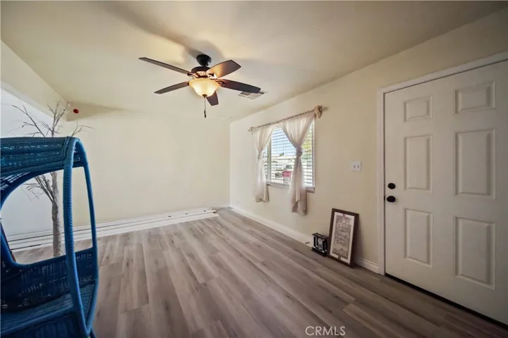 Inside, upgrades shine with new laminate flooring, trim, and baseboards throughout. All-new vinyl dual-paned windows and sliding glass doors bring in natural light while improving energy efficiency. The kitchen features granite countertops, resurfaced cabinetry, and a fresh modern feel. The bathroom has been completely remodeled with decorative tile, an upgraded vanity, new toilet, and a sleek shower glass door.
