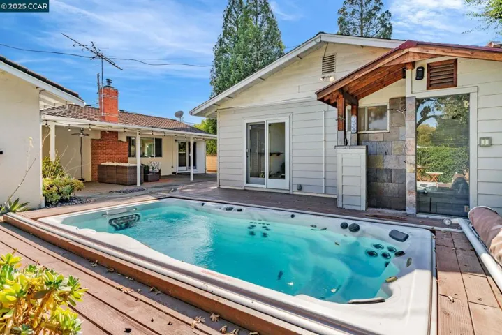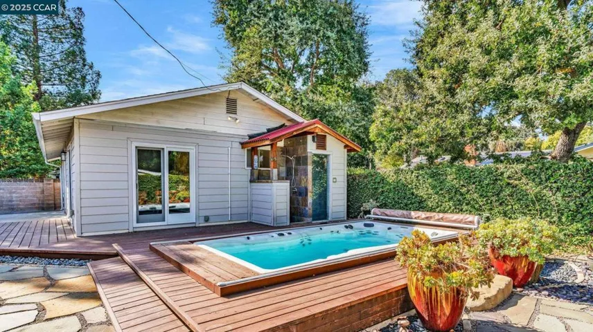 Welcome to this charming home that is tucked into a quiet neighborhood, offering both privacy and an inviting sense of community! 4 Bedrooms | 2 baths PLUS a detached studio with an additional full bathroom! Sparkling, updated chef’s kitchen with gleaming slab quartz Cambria counters, stainless steel appliances, freshly painted cabinets and an additional kitchen preparation area with great storage. A light & bright family room boasts a wood-burning fireplace insert with a brick hearth and surround, recessed lighting and recently painted interior walls. Other amenities include: recently refinished oak hardwood flooring, dual pane windows and beautiful crown moldings. A spacious primary suite features a beautifully updated ensuite bath and sliding French doors opening to the peaceful yard setting. The detached studio with a combination pull-down murphy bed/desk and a full bathroom – great as in-law/au-pair or home office! For the car enthusiast – a two car attached garage PLUS an additional detached shop for extra car storage, hobbies, and more! Boat/RV Parking. Peaceful and private back and side yard with entertaining patios, a sparkling swim spa with an outdoor shower and a spa/steam shower, a backdrop of mature trees and a lush, level, expansive front lawn and well irrigation!