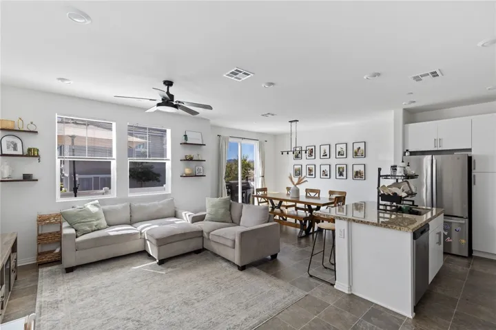 Like-New Townhome with Solar, Mountain Views & Resort-Style Amenities – Like-new 3-bedroom, 2.5-bathroom townhouse located in the highly desirable Horizon Place Community of Wildomar. With no neighbors above or below, this home offers the perfect combination of comfort, privacy, and modern style. The open-concept main floor is warm and inviting, featuring a spacious kitchen with granite countertops, a large island with bar seating, stainless steel appliances, and plenty of cabinet space. The kitchen opens seamlessly to the dining and living areas, creating a perfect setting for entertaining or relaxing. Enjoy ample natural light throughout and new plantation shutters for a touch of elegance. Upstairs, you’ll find three generously sized bedrooms, 9-foot ceilings, and two large, modern bathrooms. The primary suite is a true retreat, offering beautiful mountain views and a large walk-in closet. A convenient upstairs laundry room adds to the home’s functionality. Step outside to enjoy the many community amenities including a pool, spa, fire pit, BBQ area, and tot lot—perfect for enjoying the Southern California lifestyle. Located in a prime Wildomar location near the Murrieta border, Horizon Place offers quick access to Clinton Keith Road, shopping, restaurants, schools, parks, and gyms, and is just minutes from both the 15 and 215 freeways for easy commuting. This is the perfect place to call home—modern, low-maintenance, and close to everything!