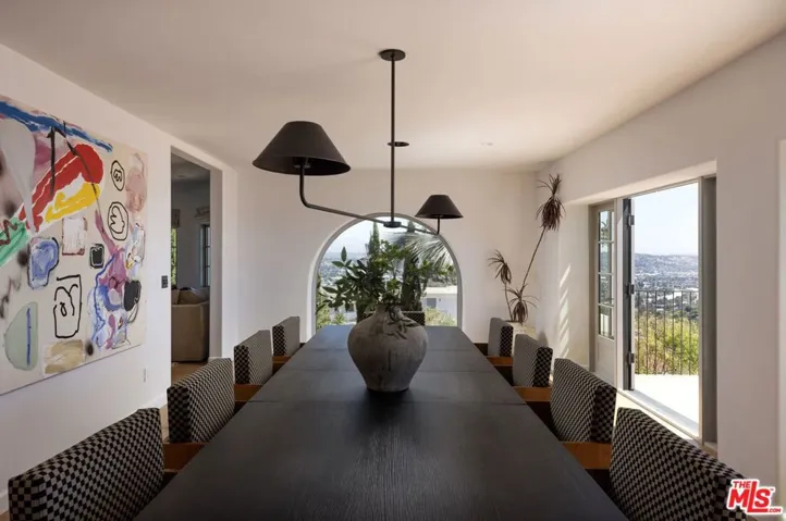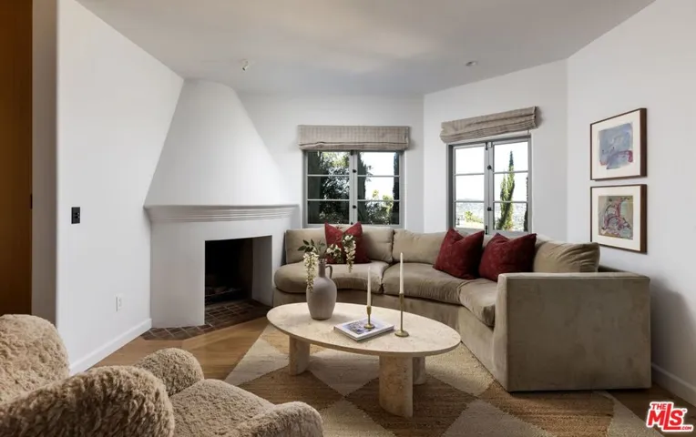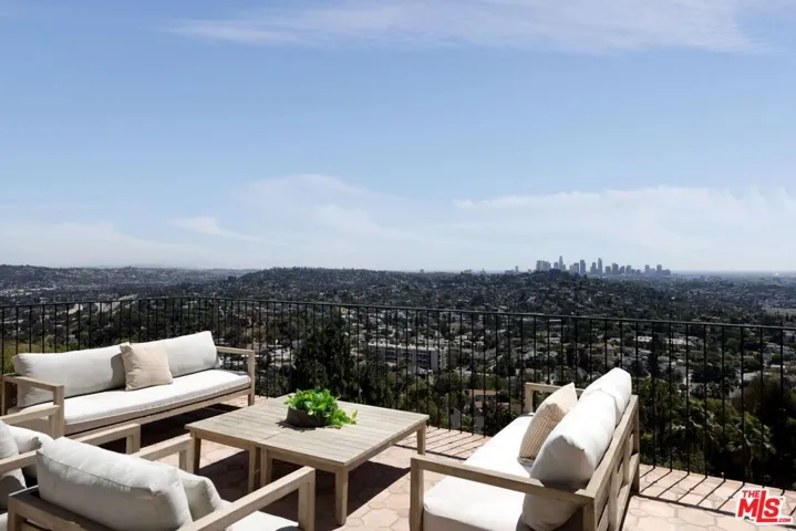Perched in the hills of Los Feliz on a quiet cul-de-sac, Casa Vista is a reimagined 1928 Spanish Colonial that seamlessly fuses timeless architecture with sophisticated modern design and panoramic city views. A private compound situated behind solid gates – the home was rebuilt from the studs with all-new systems, high-end finishes, and meticulous attention to detail. Casa Vista exudes the romance of Old Hollywood with the ease of contemporary living. A formal entry opens to the main level, where a 13-foot ceiling living room with rebuilt fireplace and arched windows perfectly frame a view of downtown LA. The kitchen was completely redesigned during the renovation and features marble slab countertops with integrated sinks, custom European oak cabinetry, a 60″ Wolf range, dual Miele dishwashers, a wine fridge, and a hidden coffee station. Upstairs, the primary suite captures sweeping skyline views and features a pitched ceiling, spa-inspired bath with a concrete soaking tub framed by an arched window, and generous custom closets. Additional bedrooms showcase Moroccan Zellij tilework, bespoke hardware, and thoughtfully designed finishes that pay homage to Hollywood’s golden age of architecture. A central courtyard frames the residence with a newly rebuilt zero-edge pool and Baja shelf, surrounded by multiple terraces designed for lounging and dining. Outdoor amenities include a built-in BBQ, gas firepit, and lush landscaping with mature olive trees, Canary Island palms, and terracotta planters. The side garden features a tranquil fountain, while curated lighting and ficus hedging create privacy and ambiance throughout. Blending historic charm with modern elegance, this residence captures the very essence of California living. With its timeless architecture, private setting, and sweeping city-to-ocean vistas, this Los Feliz masterpiece offers a rare balance of architectural integrity and effortless sophistication – crafted for those who appreciate design, history, and the art of living beautifully.