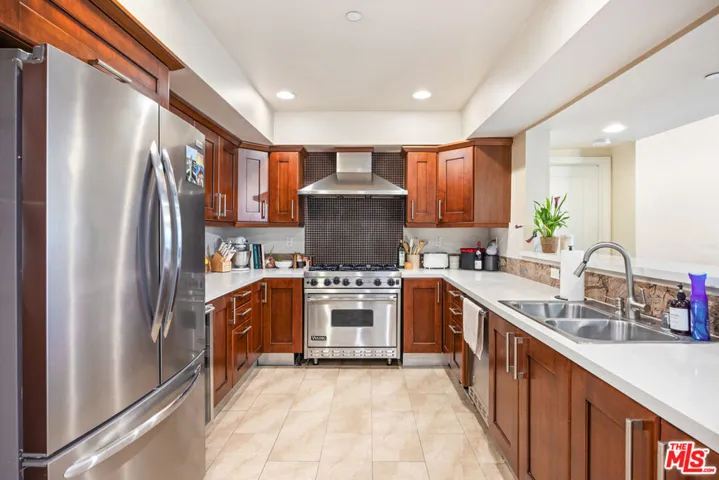 Front-facing, single-level condo located in the heart of Brentwood! Bathed in natural light, this stunning unit features 3 bedrooms, 2.5 baths and 2 parking spaces. Enjoy 5 private outdoor balconies, with every bedroom featuring its own front-facing balcony and serene tree-top views. Situated in a highly sought-after 12-unit building with elevator access, this beautiful home boasts hardwood floors, central AC/heat, a cozy fireplace, an in-unit washer/dryer, and guest powder room. The expansive open-concept gourmet kitchen is perfect for entertaining, complete with a breakfast bar, stainless steel appliances, and a Viking 6-burner stovetop. The spacious primary suite includes a walk-in closet, dual sinks, shower, and a separate soaking tub. Two additional bedrooms share a large bathroom with dual sinks. Secure, gated garage with two parking spaces and storage. Just a short stroll to cafes, markets, boutiques, and top dining spots on San Vicente and Wilshire Boulevards. A rare opportunity to live in one of Brentwood’s most desirable locations!