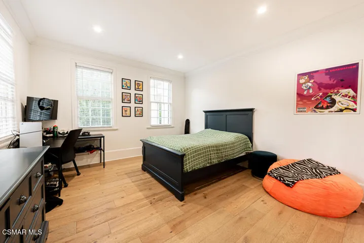 Discover the art of refined living in this beautifully reimagined 5,226 sq. ft. residence, perfectly positioned along the fourth hole of the prestigious Lake Sherwood Golf Course. Set within the exclusive guard gated community of Lake Sherwood, this stunning six bedroom, five bath estate captures sweeping fairway and hillside views, offering an unparalleled blend of natural beauty, privacy, and sophistication.Designed for both grand entertaining and effortless everyday living, the home showcases a magnificent great room with soaring ceilings and expansive picture windows that flood the space with natural light. The chef’s kitchen is a statement in craftsmanship and style, featuring top of the line appliances, custom cabinetry, and refined finishes throughout.The primary suite is a private sanctuary with a spa inspired bath, a serene balcony overlooking panoramic views, and elegant design details that elevate every moment. Each additional bedroom is generously appointed, offering comfort and space for family or guests.Outdoors, indulge in the ultimate California lifestyle with lush, manicured grounds, a private infinity edge pool, a luxury outdoor kitchen, and a versatile sport court, all set against the breathtaking backdrop that defines Lake Sherwood living.A seamless blend of timeless elegance and modern luxury, this exceptional Lake Sherwood estate embodies the very essence of elevated living, where every view inspires and every day feels like a getaway.
