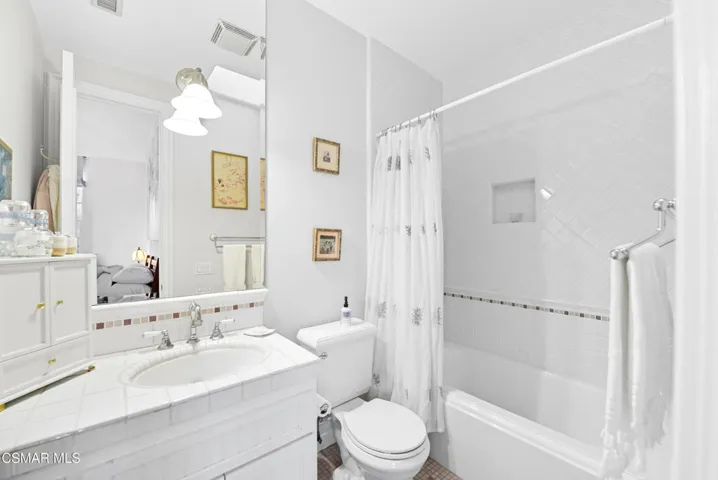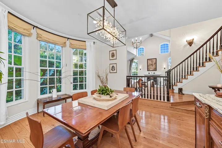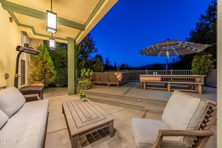 Elegant Country French Estate in Prestigious Medea Valley nestled atop a privately gated knoll. Masterfully built with the finest materials including designer tiles from famous Mission Tile Co. Sweeping mountain and valley views are the backdrop to classic elegance with modern amenities. The community security gate ensures exceptional privacy and a peaceful retreat. Upon entry, you’re greeted by soaring ceilings and expansive windows in the Formal Living Room, while the spacious Dining Room features a graceful bay window ideal for entertaining. The heart of the home is the open-concept Family Room, Kitchen, and Breakfast Nook. The gourmet Kitchen includes a prep island, Viking appliances, walk-in pantry, white cabinetry, and generous counter space. The sunlit Family Room offers a built-in entertainment center, fireplace, and French doors leading to a charming patio with built-in BBQ. A downstairs Bedroom with custom office cabinetry provides a flexible workspace and a private bath. Upstairs, the luxurious Main Suite features a fireplace, sitting room with private veranda, dreamy walk-in closet, and a spa-like bath with soaking tub. French doors open to a large balcony that overlooks the pool and serene mountain vistas. Completing the upstairs are 3 additional bedrooms and two well-appointed baths plus an amazing 500 sq ft Bonus Room with fireplace and private exterior entry. The beautifully landscaped grounds include a private orchard with apple, peach, plum, and lemon trees, a pool and spa, expansive deck with beautiful views and a park-like playground. Recent upgrades include a new HVAC system and remodeled pool with new equipment.Additional highlights: Oversized three-car garage with custom cabinetry, 108 sq ft potting room/studio or storage, EV-ready with separate meter and hookup.Private community access to hiking trails in the Santa Monica Mountains Preserve and Paramount Ranch. Medea Valley Estates is just five minutes from the 101 freeway and offers convenient access to schools, fine dining, wineries, shopping, and Malibu beaches. A rare blend of privacy, luxury, and location–this custom-built estate is truly one of a kind.