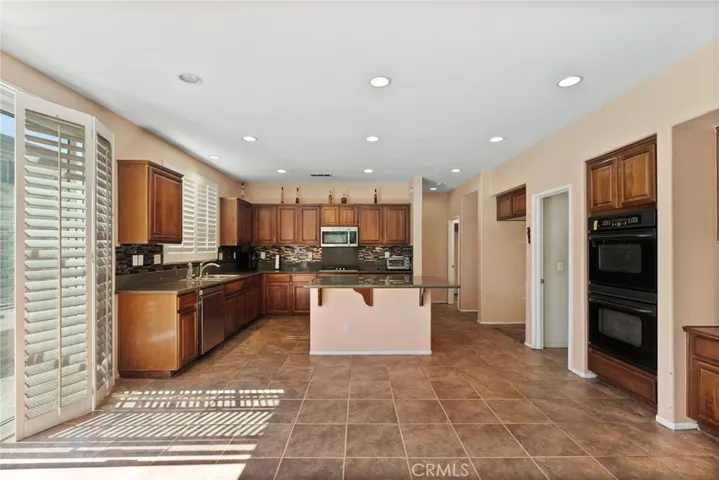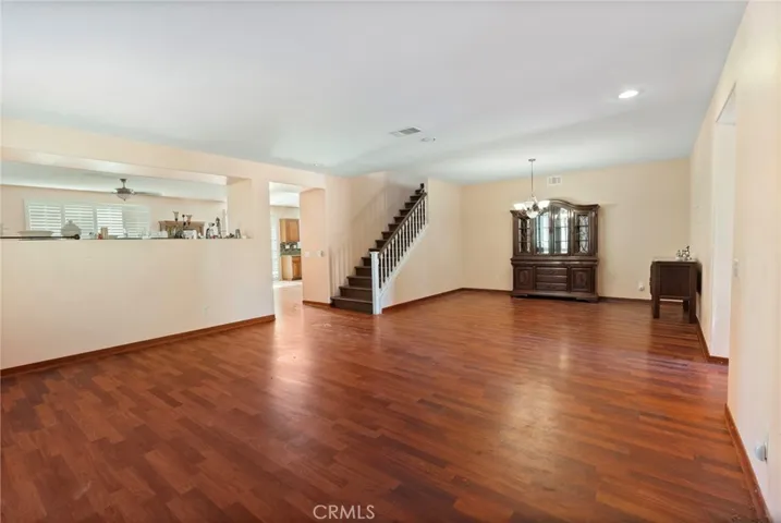 This beautifully finished home offers generous living space and modern comfort throughout. Featuring a bright and open floor plan, the home includes both formal and casual living areas perfect for entertaining or relaxing. The kitchen features ample cabinetry, a large island, and seamless flow to the dining and family room areas. Upstairs you’ll find well-sized bedrooms, an open living area with office space, and a spacious primary suite with a private ensuite bath and shower. The potential 6th bedroom has been converted to a full walk-in closet space for those looking to store an extra wardrobe, creating flexibility and options for growing or larger households. Enjoy Southern California living in the private backyard, ideal for gatherings and festive meals. Additional highlights include a 3-car garage, central air and heat, and convenient proximity to parks, schools, and shopping. This house is ready for those wanting an open, blank canvas, and those simply looking for an upgraded amount of space and comfort!